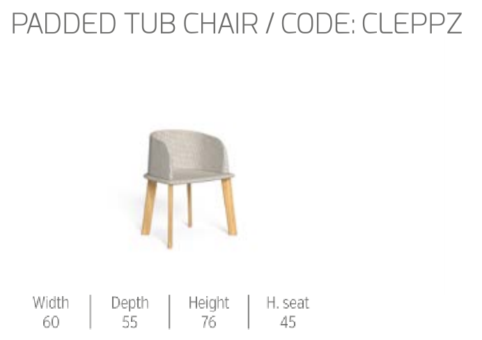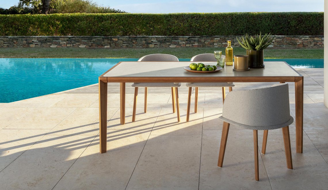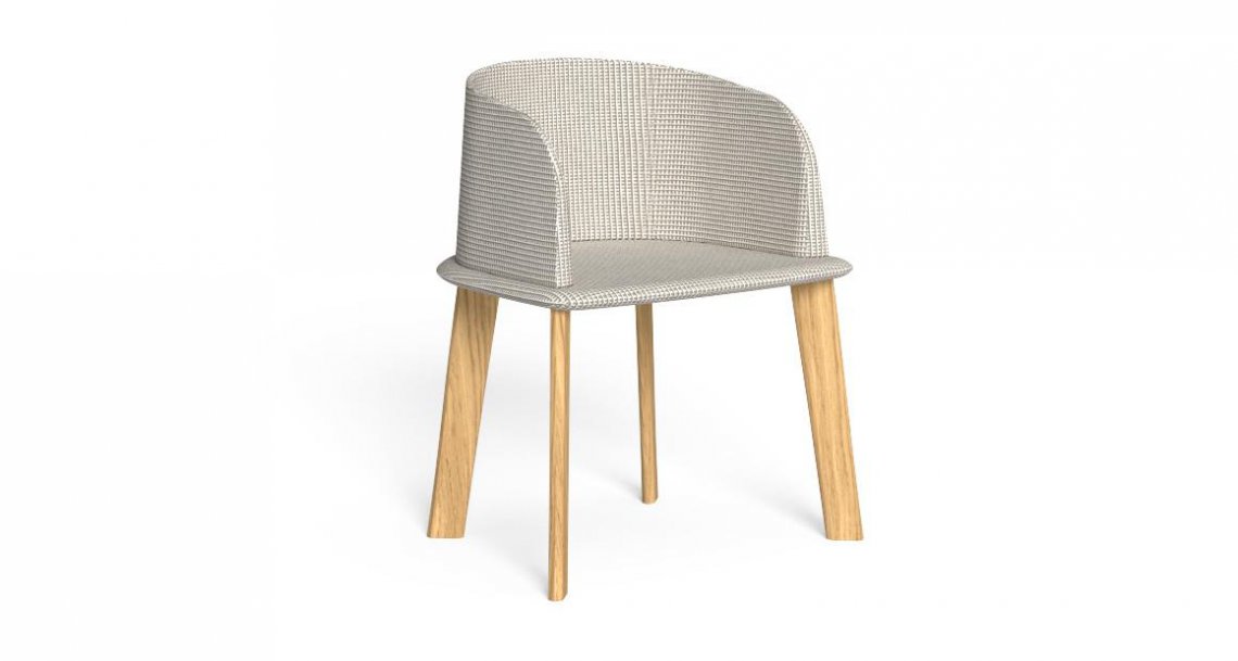 La seduta presenta lo stesso design della seduta lounge, permettendo l’abbinamento con tutti gli elementi della collezione, in particolar modo con quelli dalle linee morbide. La struttura è in legno. Cuscineria in tessuto, sfoderabile, facile da lavare e resistente agli agenti atmosferici. Imbottitura in quick dry foam.