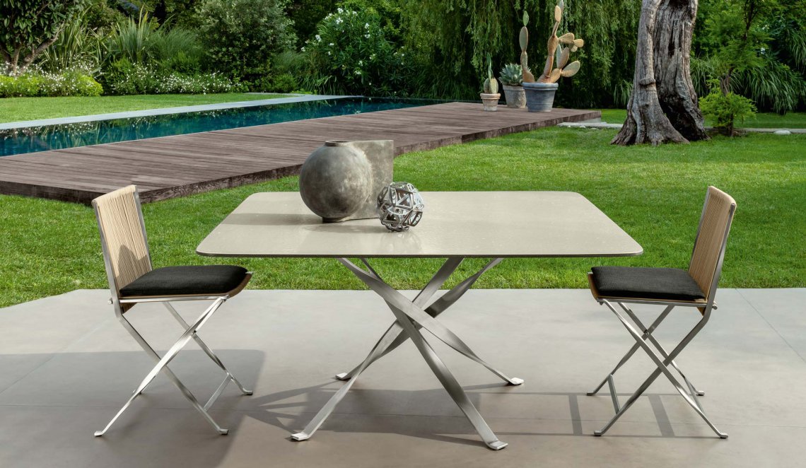 La minuziosa attenzione con la quale sono state scelte le materie prime per realizzare il tavolo da pranzo 150×150 George, lo rendono perfetto per un living da esterno di valore. Il piano quadrato è sorretto da una struttura in acciaio inossidabile sulla quale è previsto un piano in legno di Accoya o pietra lavica in diverse varianti di colore.