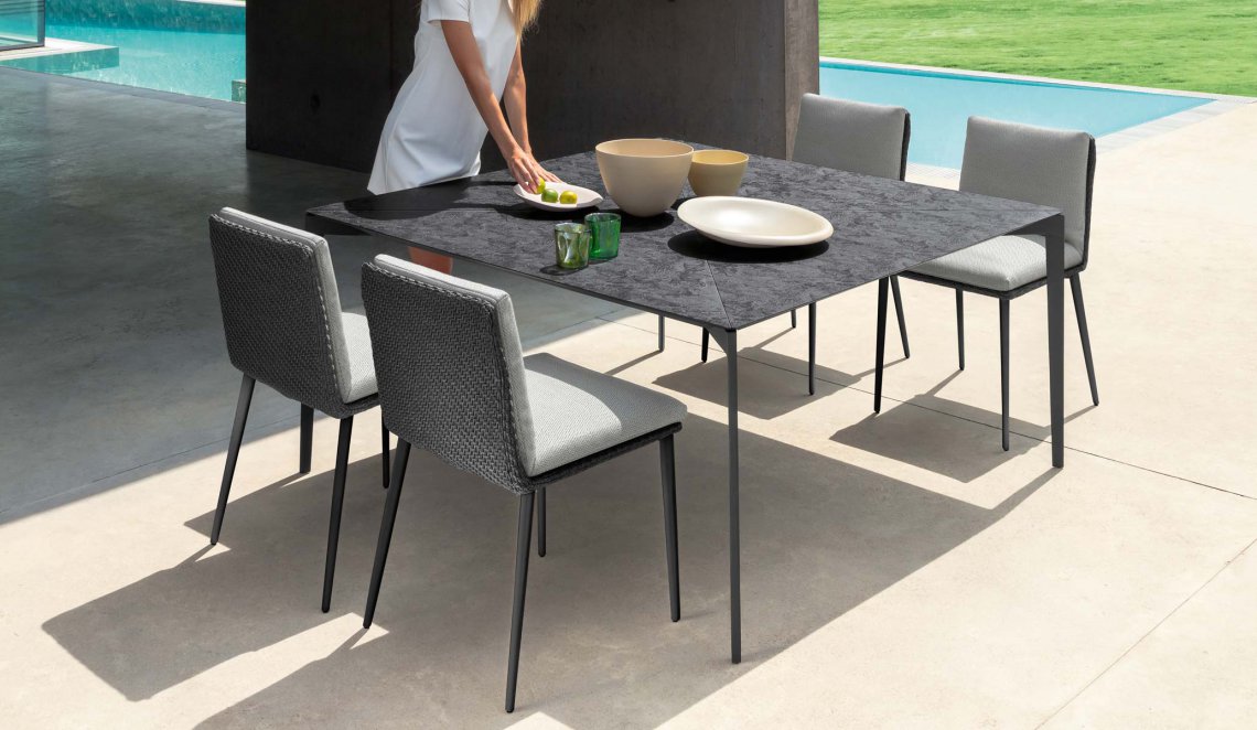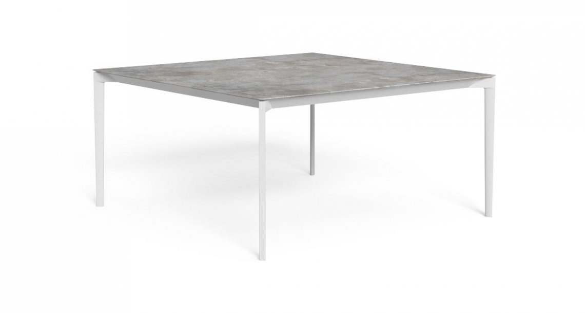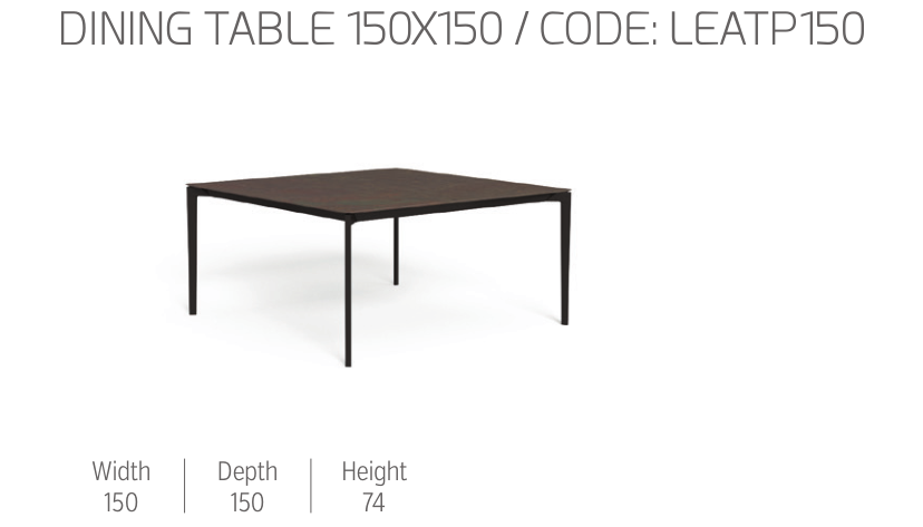 Il tavolo da pranzo 150×150 della collezione Leaf può ospitare fino a 8 persone. La sua struttura in alluminio e il piano in vitter, rispecchia l’eleganza e il design su cui si fonda tutta la collezione Leaf.
