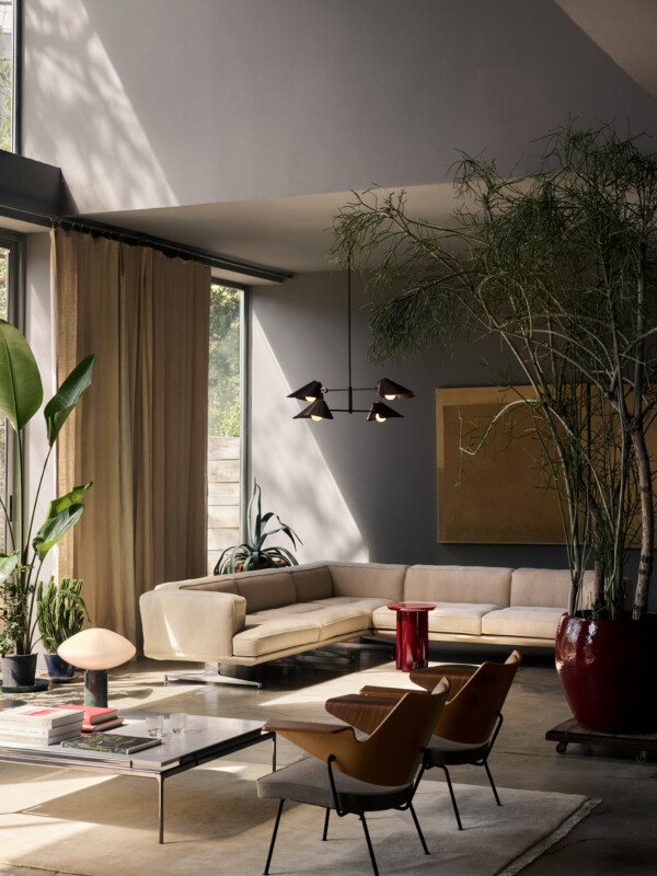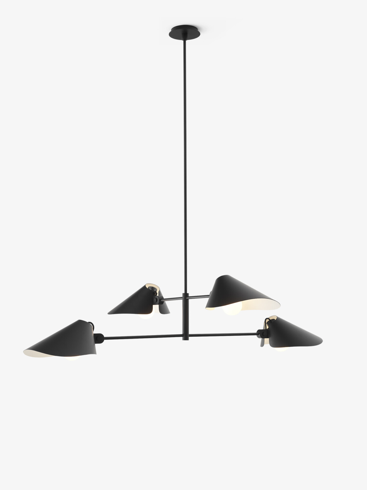 Renowned for their ability to extract elegance from simplicity, design studio Space Copenhagen created Bonnet – a collection that celebrates the inherent beauty of light. Crafted with meticulous attention to detail, the Bonnet chandelier offers three stem lengths that accentuate the outline of the lamp, exuding an aura of effortlessness and grace. The curved shades envelope the light source, which frame and guide the diffused light with precision.
