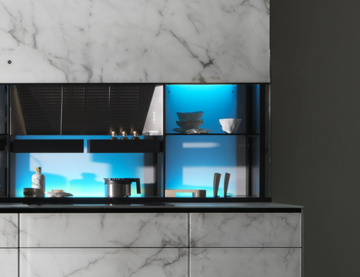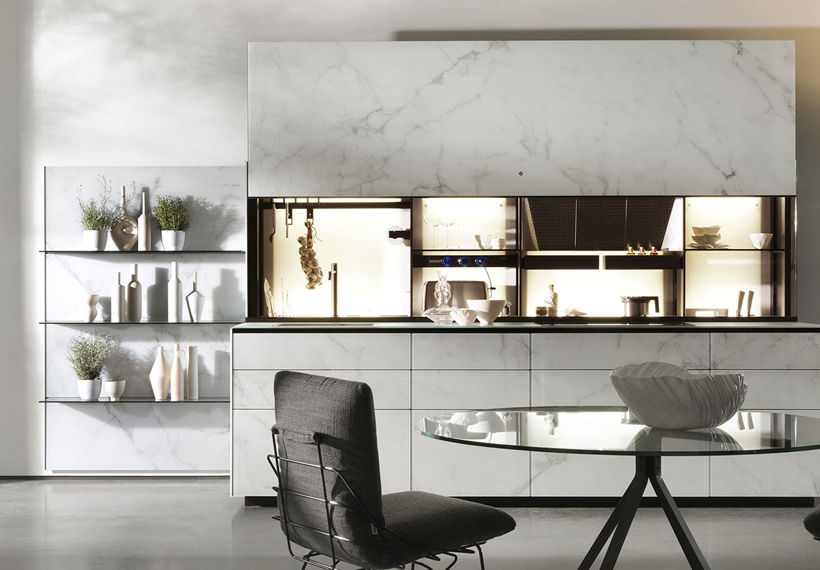 Dal gioco raffinato del vetro, in ogni colore e finitura, ai legni dalle forti sensazioni tattili, dalle superfici laccate ai laminati metallici. L’espressione del gusto personale di ogni Cliente diventa eterna, fino a raggiungere l’unicità tipica di un’opera d’arte, rappresentata nella trasparenza del vetro. Artematica è stata studiata nei dettagli per rendere i gesti più semplici e disinvolti, le chiusure morbide, per rispettare i più elevati standard di sicurezza tramite la stondatura lungo gli spigoli e i profili.