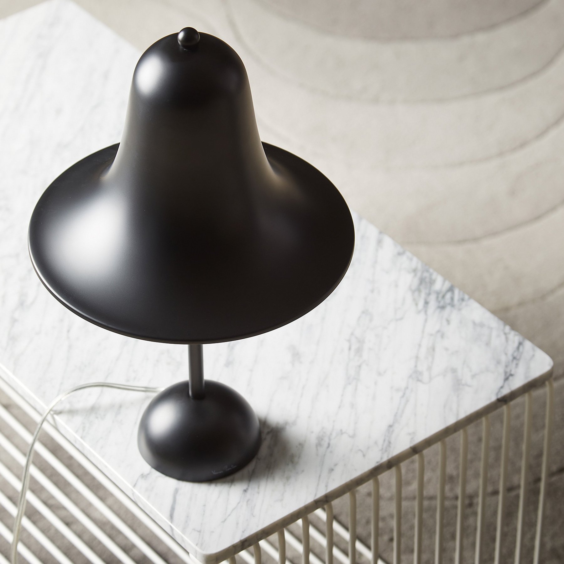 The elegant Pantop line was designed by Verner Panton in 1980, and has for a long time been a staple of the Verpan collection. Pantop is characterized by a bell-like, widely flaring shade which is mounted with the aperture facing down.