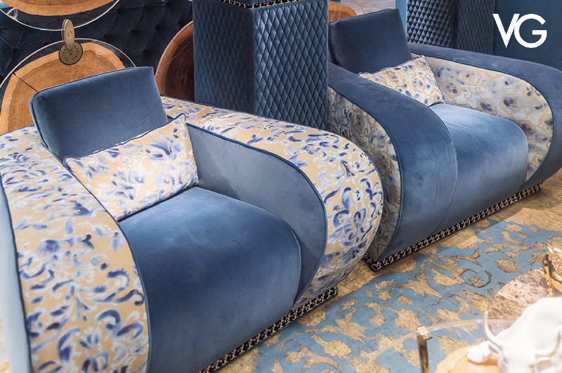 Classic armchair handcrafted by Venetian artisans, restyled by Slow+Fashion+Design for VG inspiring to antique Fortuny fabrics and Japanese shibori art. The choice of alternated textured inserts was inspired by the Yin & Yang philosophy, so that the two armchairs would complement one another.