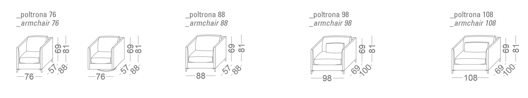 All the armchairs have been designed with the utmost attention to style, fineness, quality and care for details that are typical of Interior Design Made in Italy.