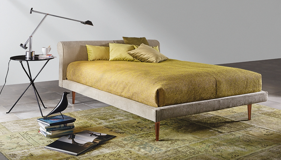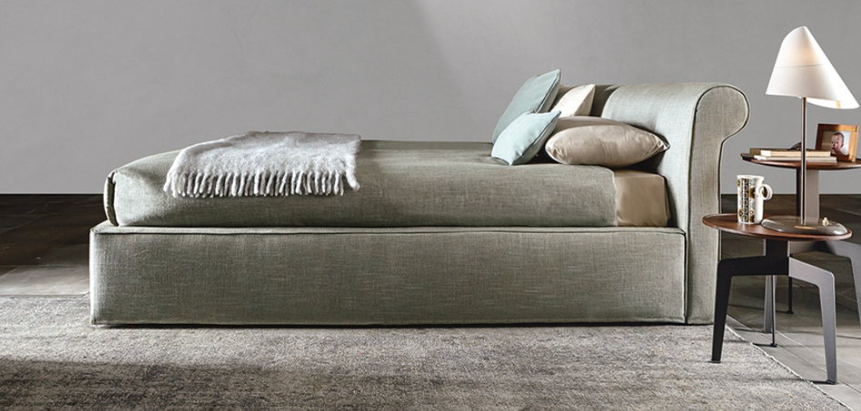 Vibieffe 5100 Arthur is a large double bed available in different sizes and with an endless range of removable cotton, linen, leather or custom covers. The bed base can be lifted to access the storage space underneath.