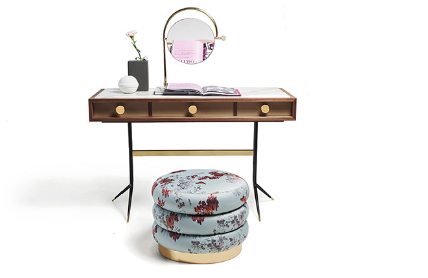 The Swing_Desk represents design’s order and essentiality; its drawers are designed to store small objects. The Swing_Console table represents the essentiality and lightness of design: the thin marble top and its legs’ thin structure confer the console table a distinctive personality.
