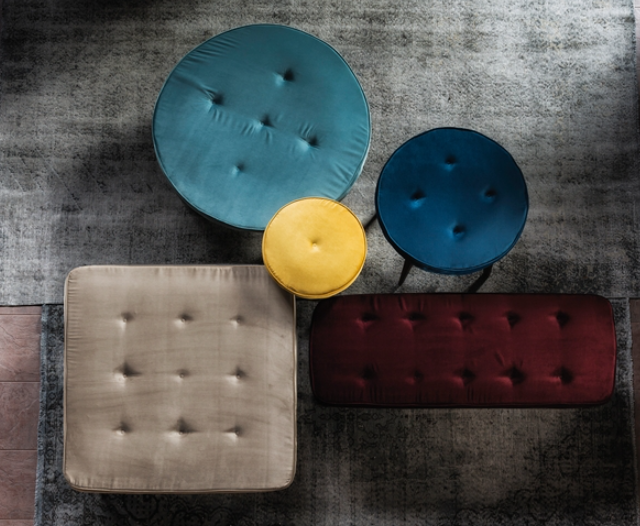 Vibieffe 9300 Pancake is series of ottomans with different shapes that can be freely combined.