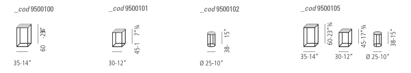 Vibieffe 9500 side tables 100, 101, 102 are a series of square or round metal tables with different sizes and heights, which can be freely combined.