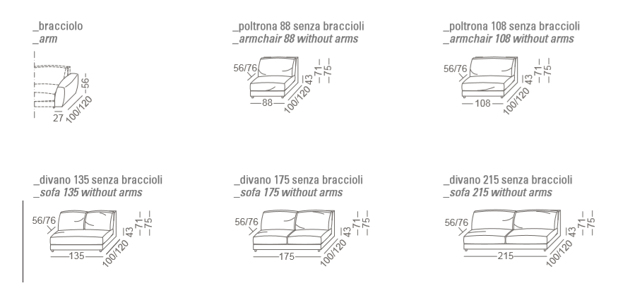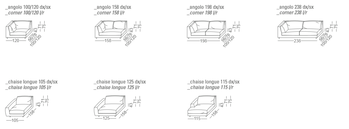 800 Fashion is an extremely customizable sofa; it can be combined into numerous variants by choosing single elements with different sizes along with corner and end elements and chaise-longues, also having great depth, that can be freely joined together.