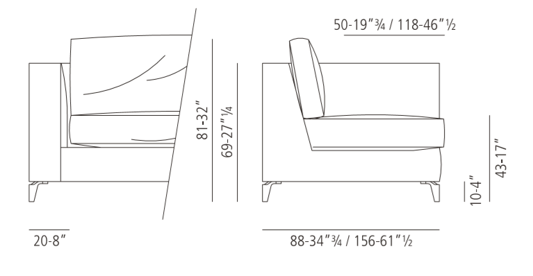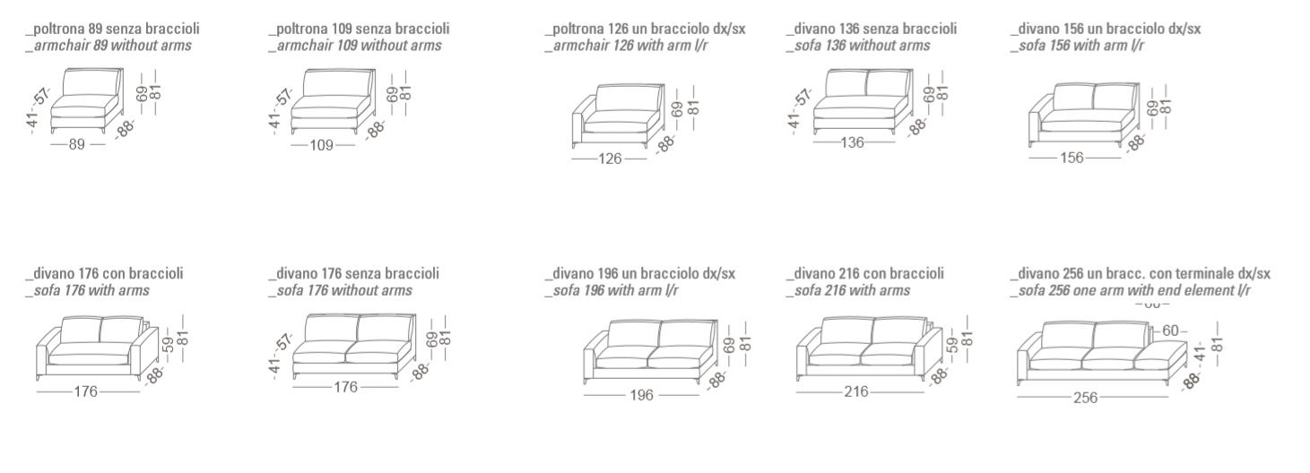 The most interesting features of the 920 ZONE Comfort sofa are its classical armrests, the Canaletto wood or aluminium feet and the possibility to combine the sofa with wide single elements, chaise-longues and ottomans.