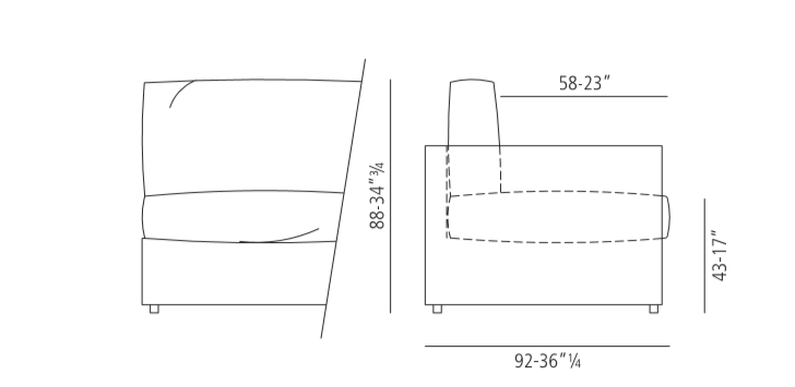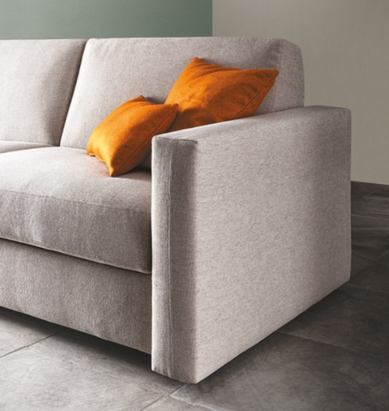 The main features of 2200 Squadroletto are the two variants as sofa and sofa bed, the versatile design which allows a corner sofa bed to be combined with various corner and end elements. You can choose from four different types of arms or even choose the variant without arms.