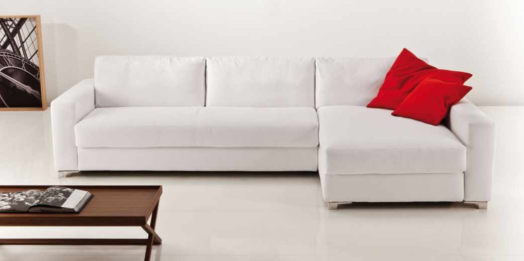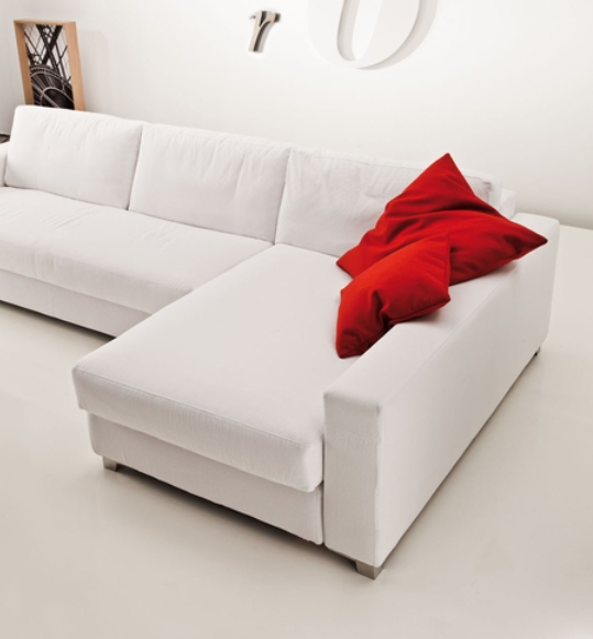 Vibieffe 2700 Prince is a two-seat modular sofa bed with chaise-longue, available with completely removable covers in cotton, linen, leather or with custom covers.