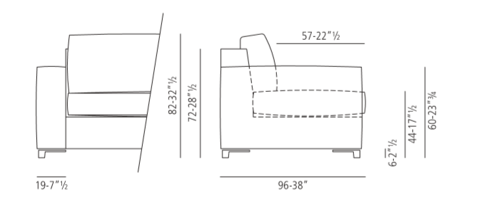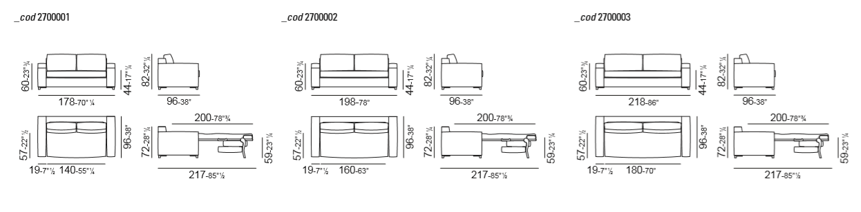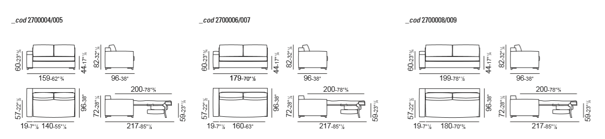 The main features of Vibieffe 2700 Prince are the contemporary and basic lines of the design, the versatile combination with a side chaise-longue and the possibilty to choose from three different sizes of seats and bed.