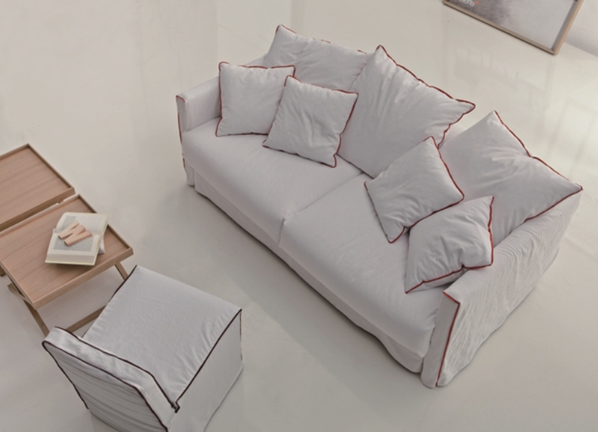 3600 Tangram is a sofa bed whose design delivers softness and clean lines, characterized by numerous cushions also available with piping in contrasting colours. Seats and bed come in three different sizes.