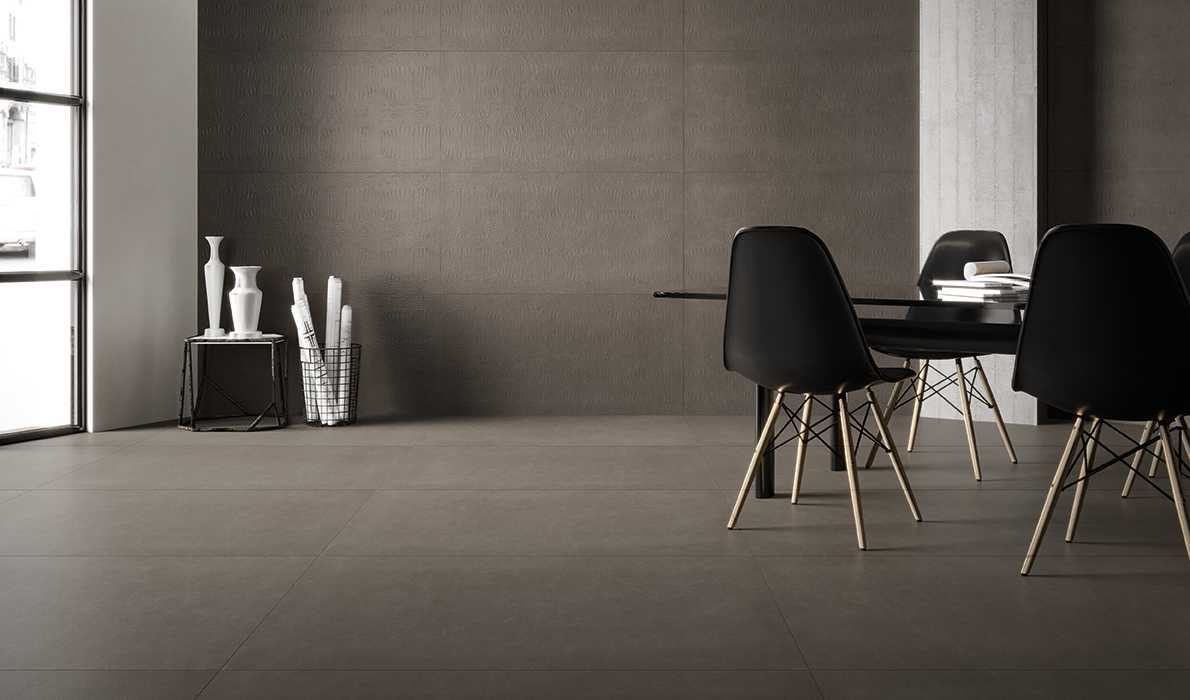 A dynamic, exclusive collection for interiors. Slate and wood, applied on walls and floors, give large interiors a striking architectural character; leather, used as a wall covering, delights lovers of avant-garde design. Also available in 20mm size.
