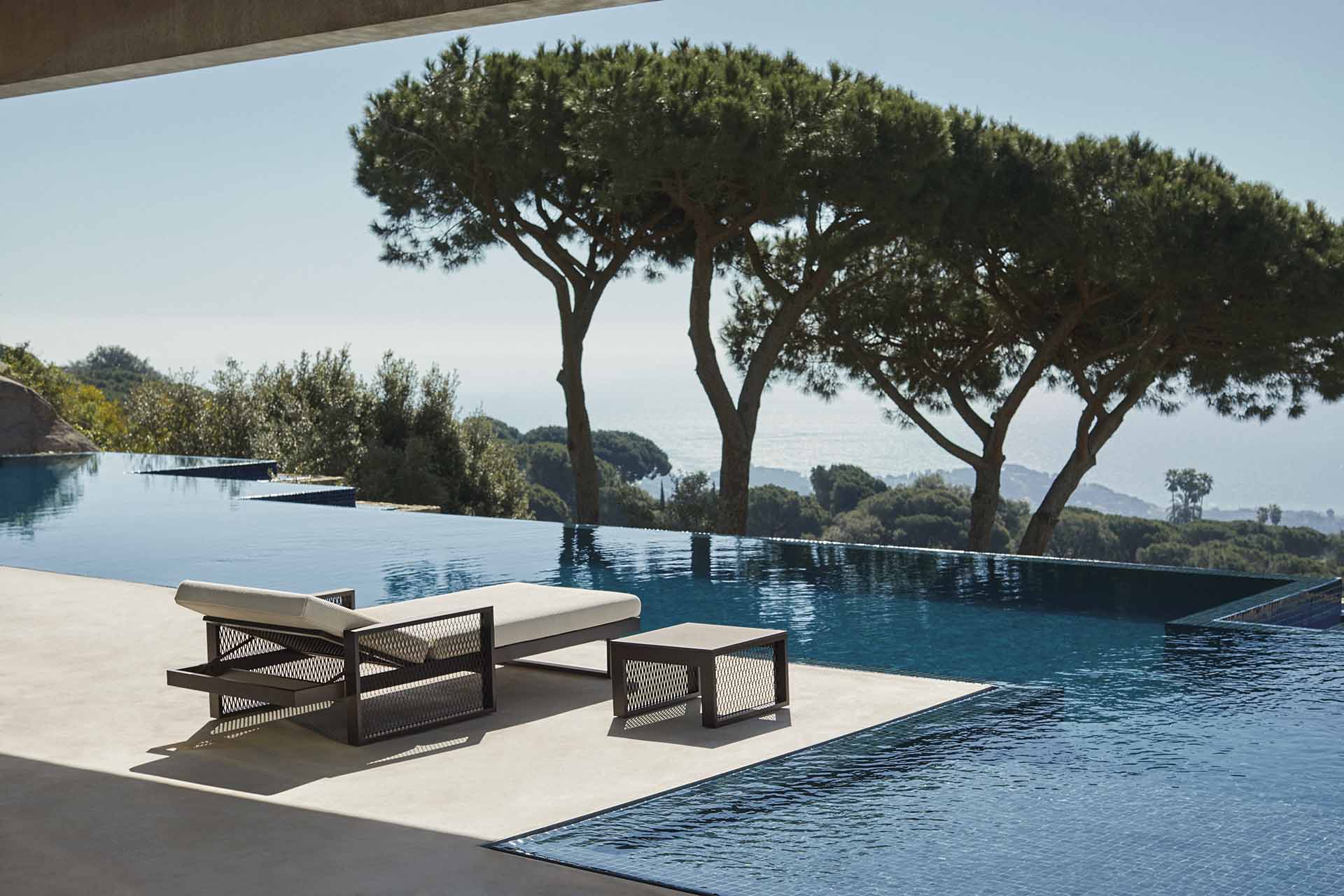 Made from aluminum and with a very comfortable padding. Our fabrics are available in a wide range of colours and very pleasant to touch. This collection is suitable for an indoor and an outdoor use.