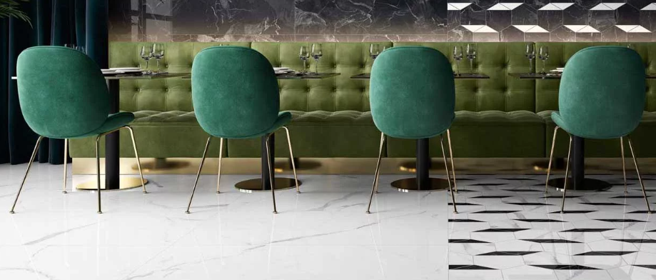 NOCTURNE comprises basic and décor tiles made of glazed porcelain stoneware in three noble colours, for highly aesthetic monochrome installations and high-contrast colour combinations. Two-tone, twelve-sided décor tiles in the form of impressive, blossom -shaped ornaments are also available, for attractive décors on walls and floors.