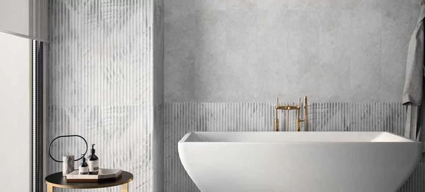 Familiar yet mysterious, clear and yet a bit surprising – OMBRA wall tiles play with the illusions of light and shadow. The elegant range combines two looks in a single design with a glamorous touch: fine stripes and a graphic-floral pattern that appears stronger or weaker depending on lighting and the viewing angle.