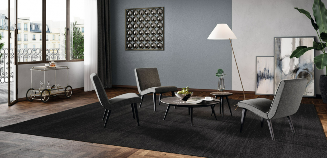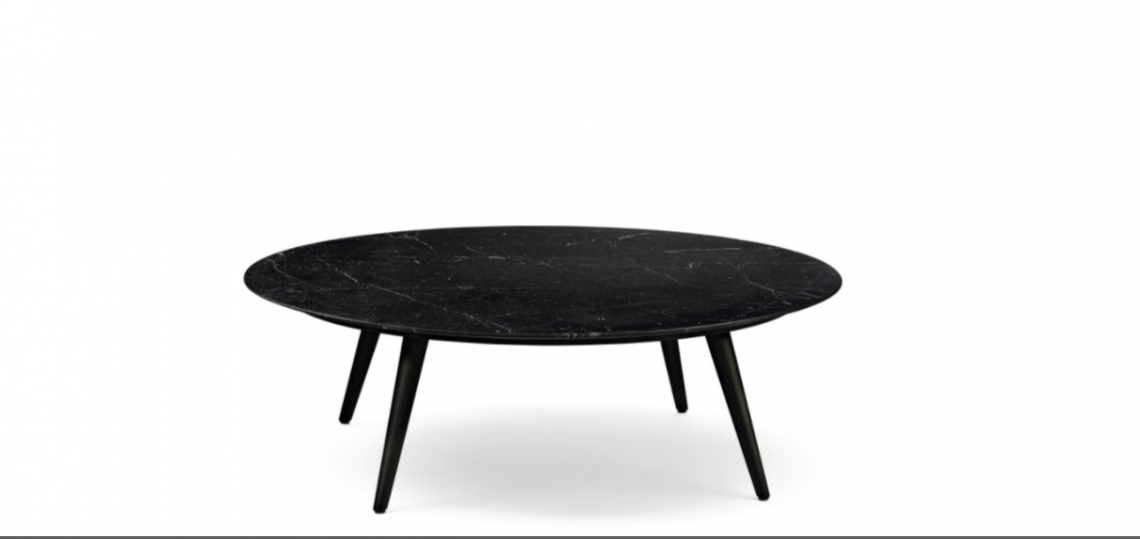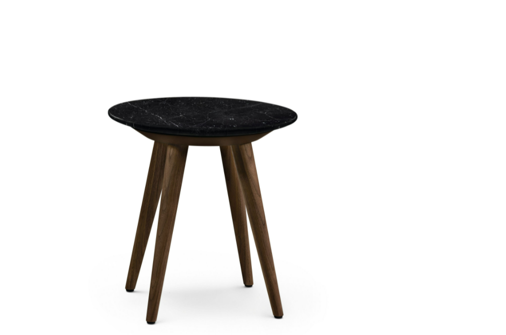 The circular occasional tables of the iconic 375 range are available in a small or large circumference, with a high-quality marble table top. The feet are solid wood.