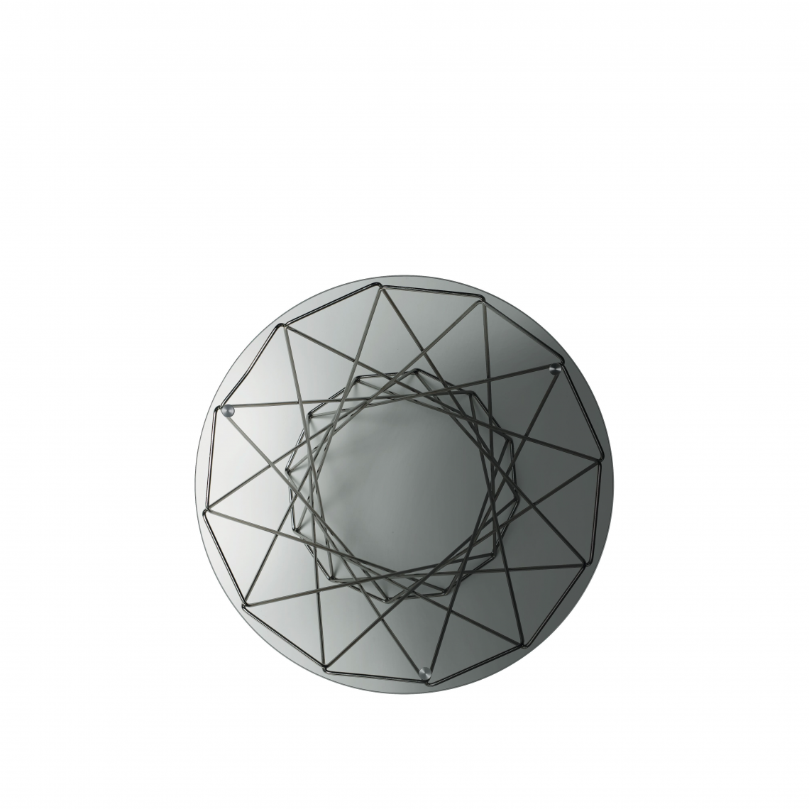 Elegant and brilliant as a piece of jewelry: delicate basketwork supports the round glass top, with its subtle and atmospheric reflection of light. Five different sizes are available, with coated or polished steel frame. Oota Side Table can be used as a sofa table or occasional table.