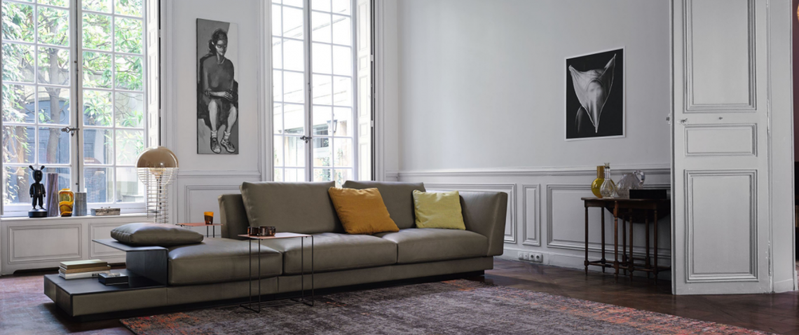 Precise lines, honest craftsmanship, fine materials – the Grand Suite Sofa collection represents both the special and the personal. Its generous, soft cushions ensure exceptional comfort. The horizontal line of the upholstery overflows the armrests and shelf.