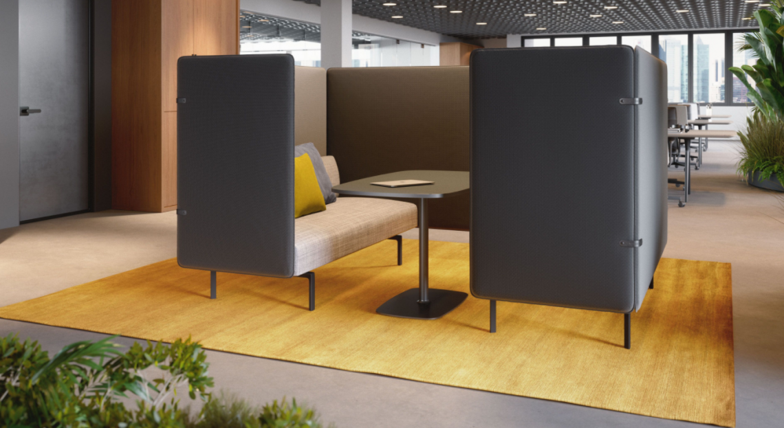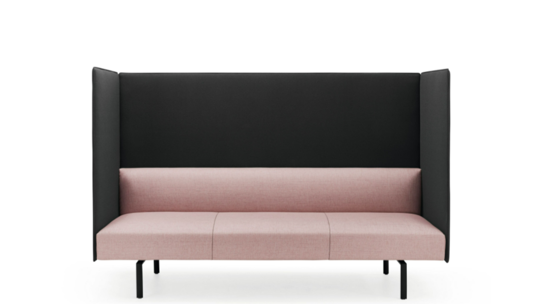 The screens of the Muud Silent Sofa make it possible to create a space in a large room where you can have confidential conversations and work on something together. A sustainable and economical solution – reduced in material and volume.