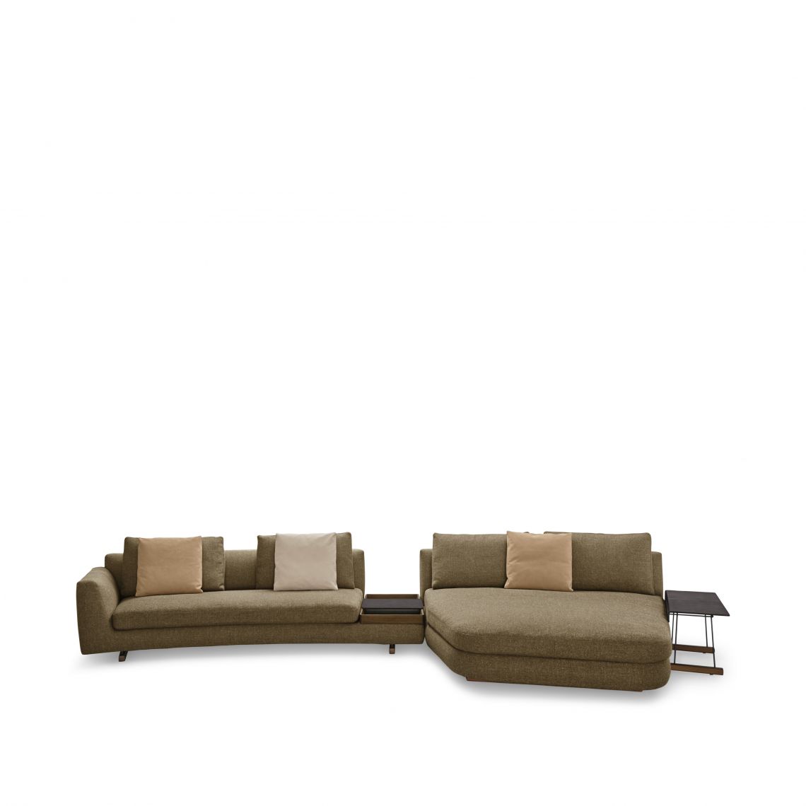 A central lounging space and comfortable seating as a personal place of relaxation. Spacious, soft, clear. Every single detail – from the luxurious Double Récamiere, the elegant blades and storage surfaces to the continuous down-filled cushions – created through dedication and executed with consummate upholstery expertise.