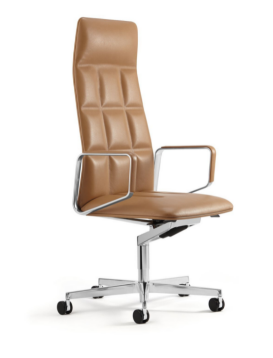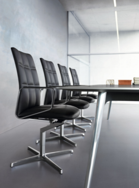 For the ergonomic comfort of modern leadership culture: every aspect and every line precisely coordinated. Soft leather modulates the elegant upholstery, and the star base, swivel column, seat and back fork, and the armrests appear is if they are one. Whether as an executive chair, a conference chair, or a visitor chair.