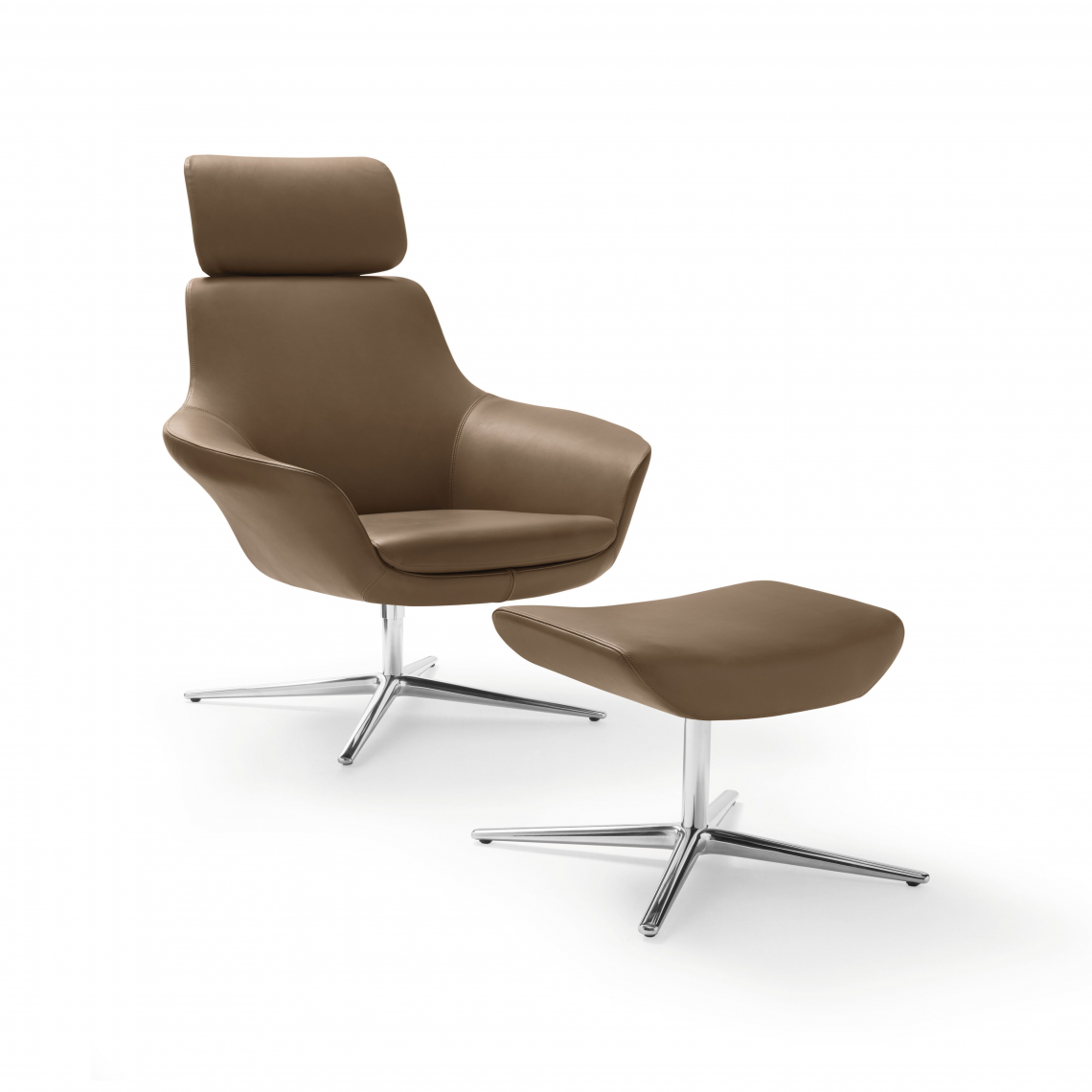 Organic design for relaxed seating: flowing lines reveal its ergonomic shape. Special care is taken with the upholstery, with carefully coordinated, modern materials for seat and back. Fully adjustable, with or without headrest. An additional footstool completes Oscar Armchair.