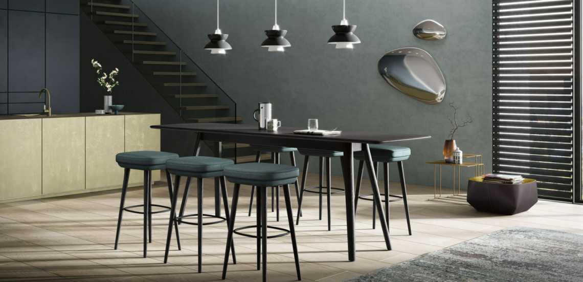 The high table for conversations at eye level. In executive offices, creative spaces, bistros or kitchens, Deen High Standing Table becomes an ideal meeting place. The slim, oval table top with soft edges creates a feeling of closeness and trust, and the design stands freely in the room on slim legs.