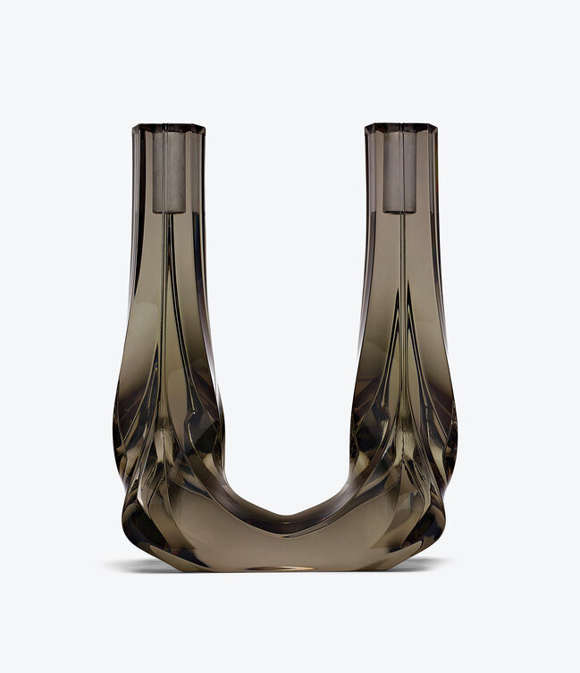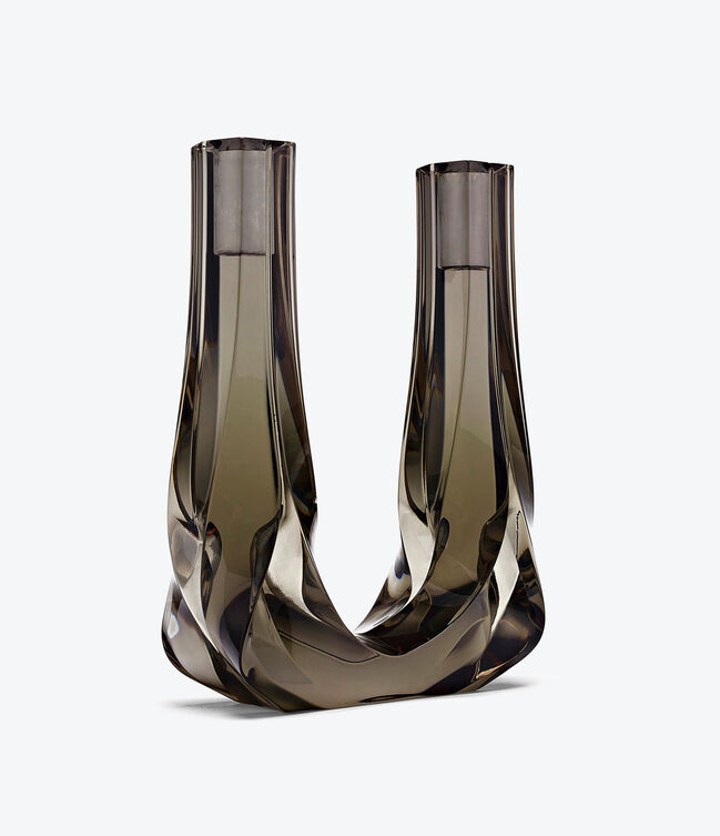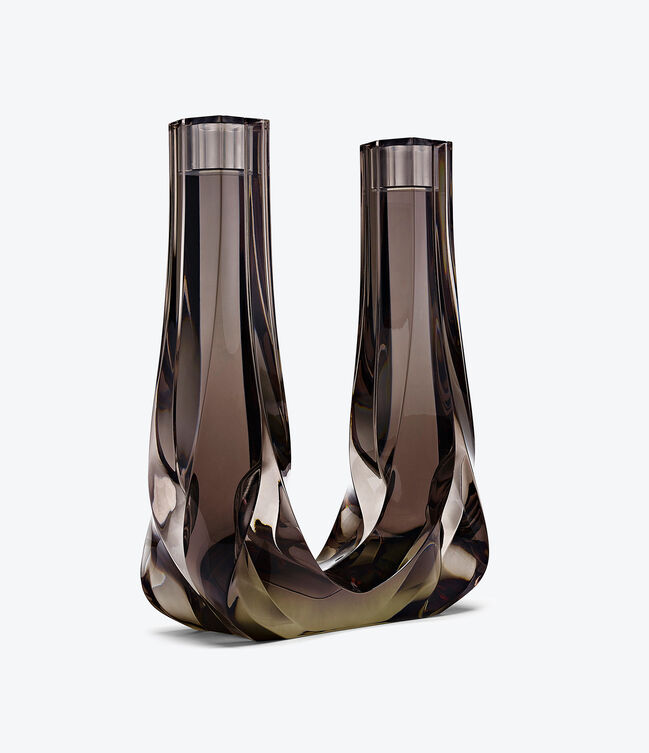 BRAID Double Candleholder - polished resin - comprised of eight 'ribbons' that intertwine transitioning vertically into two pillars. A Certificate of Authenticity will be provided.