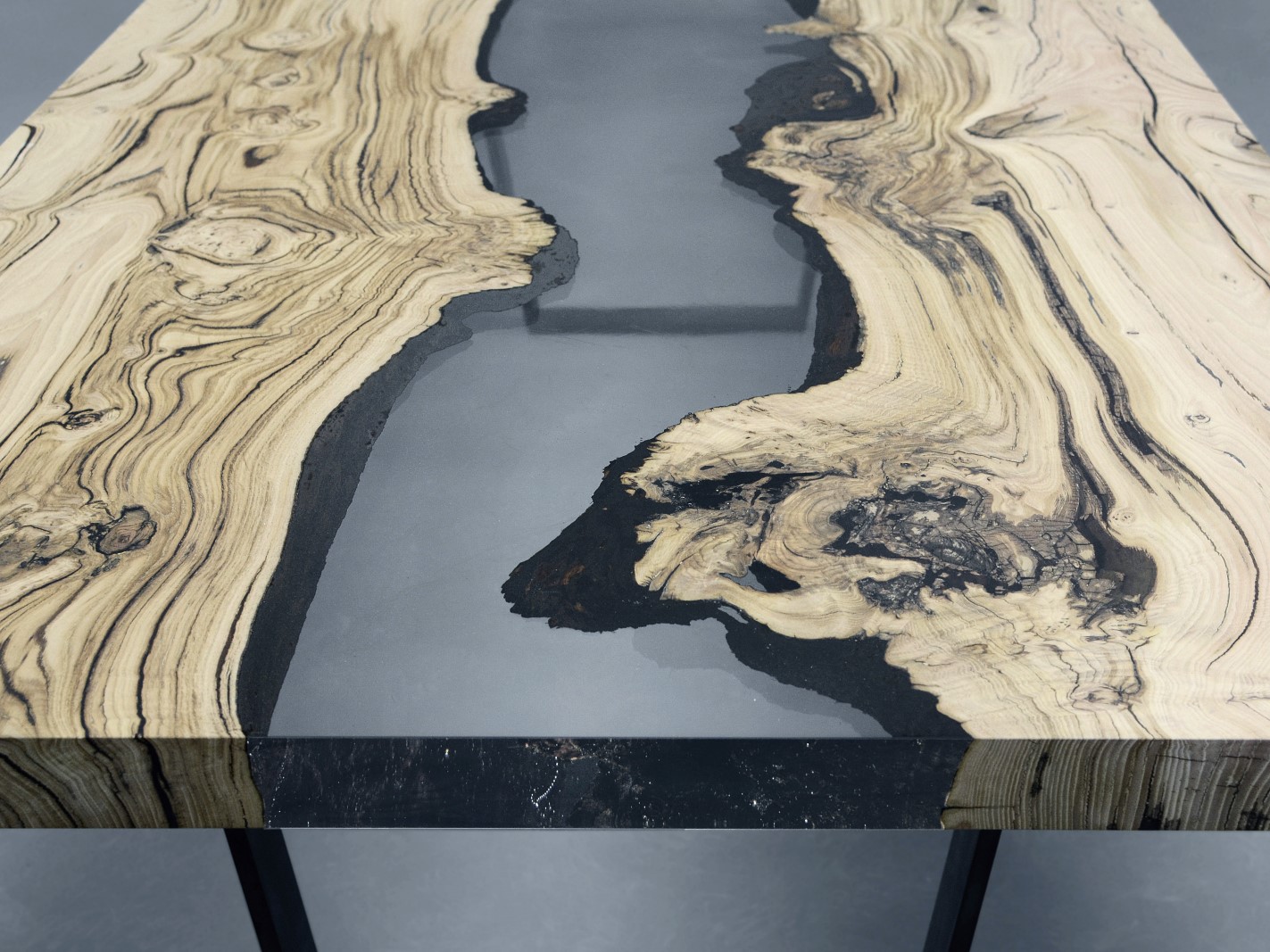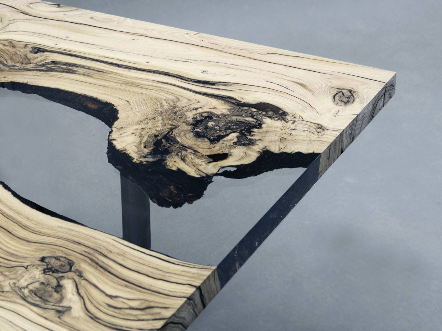 Natural Wood surface not covered by resin on the section planes. Selective wood coating with matt natural effect.