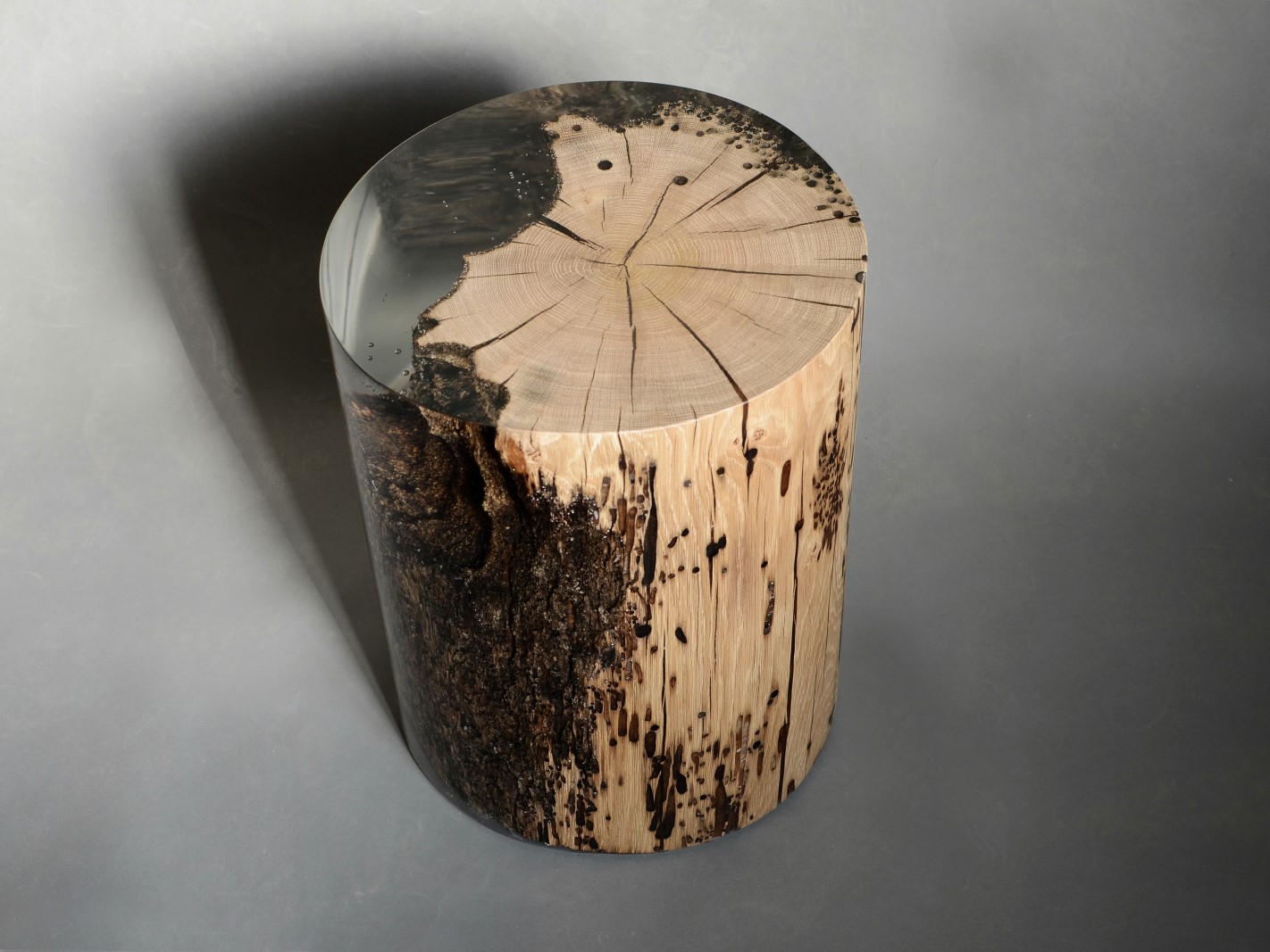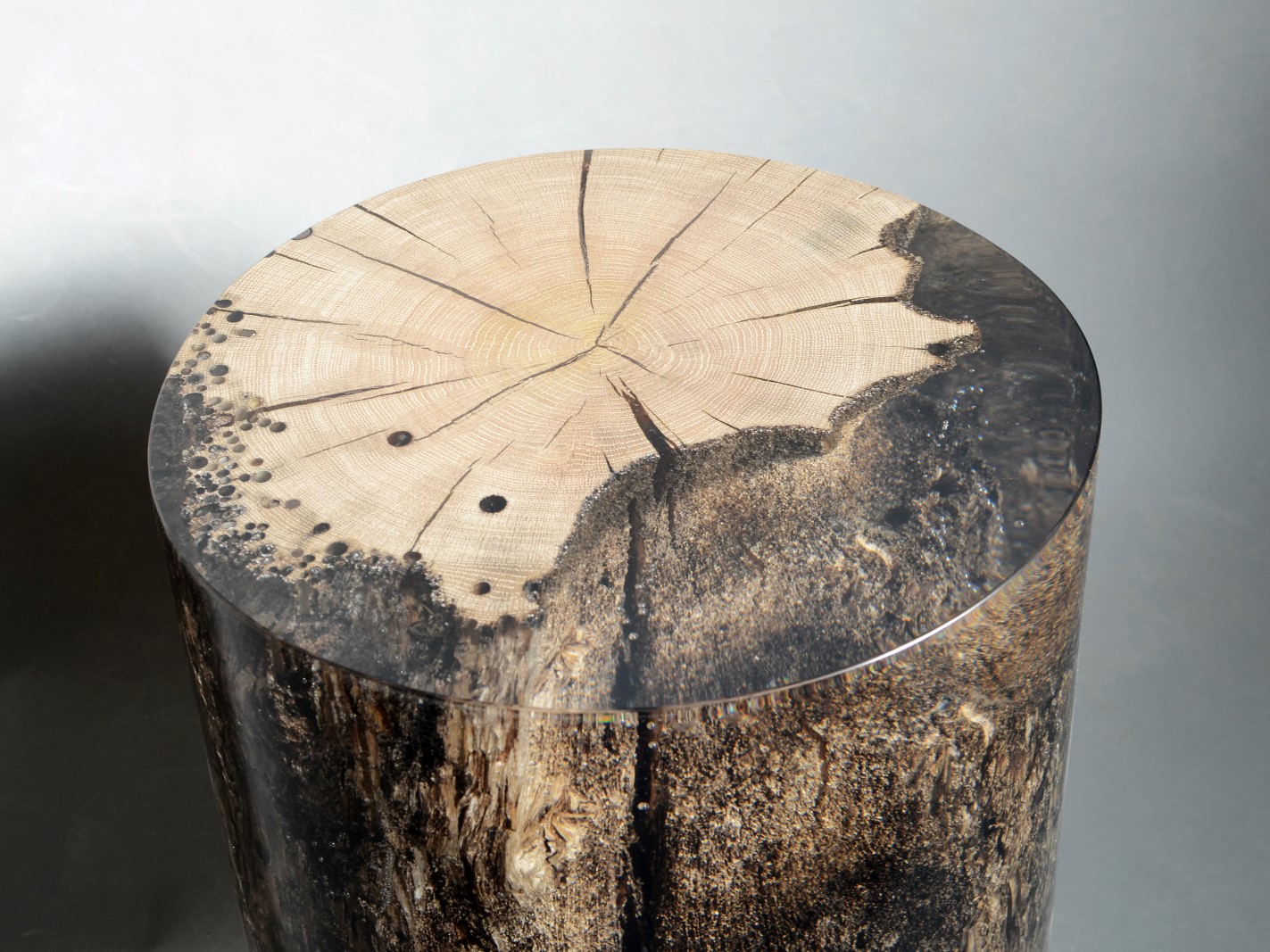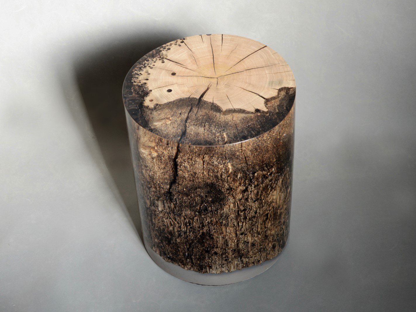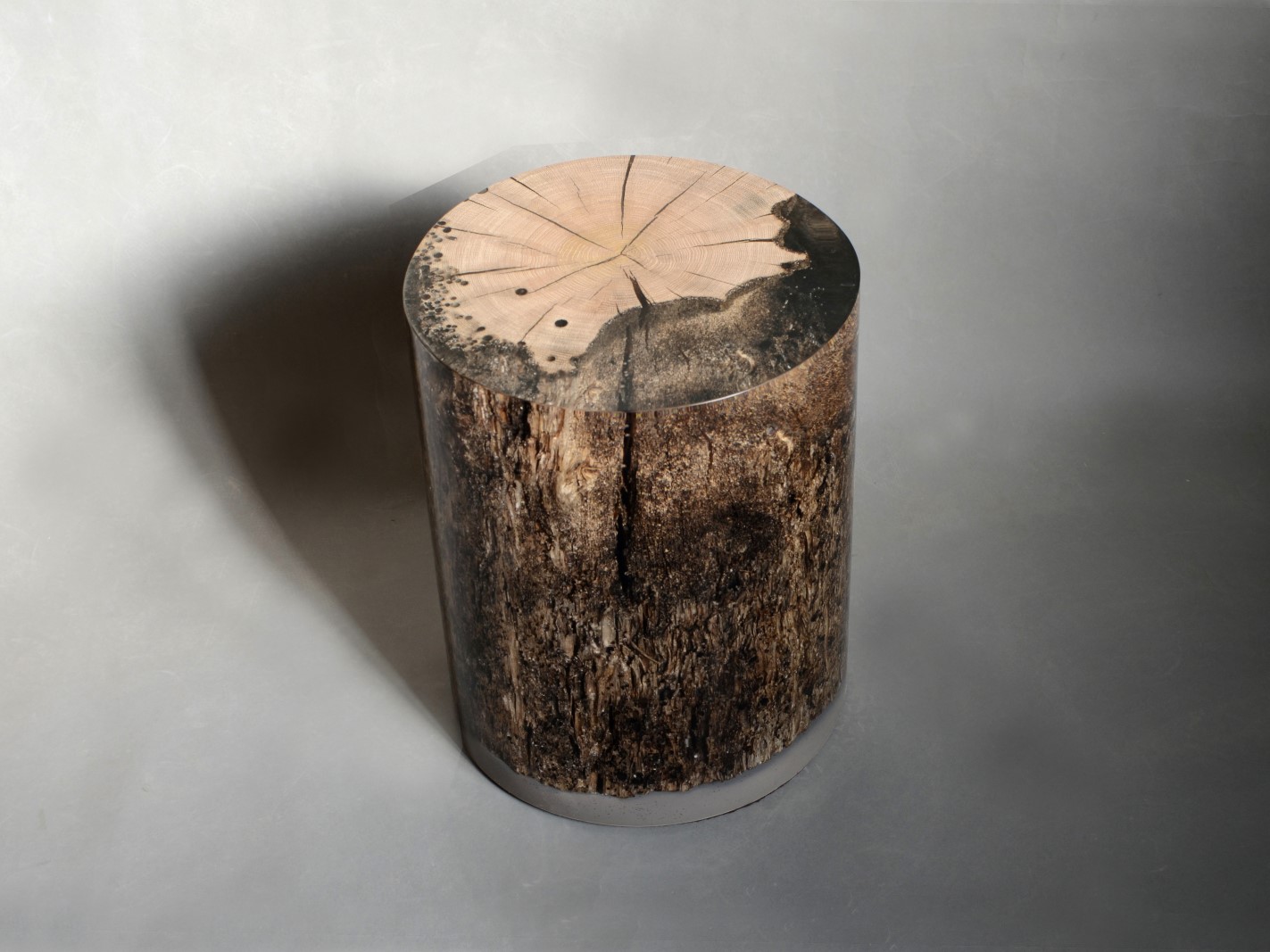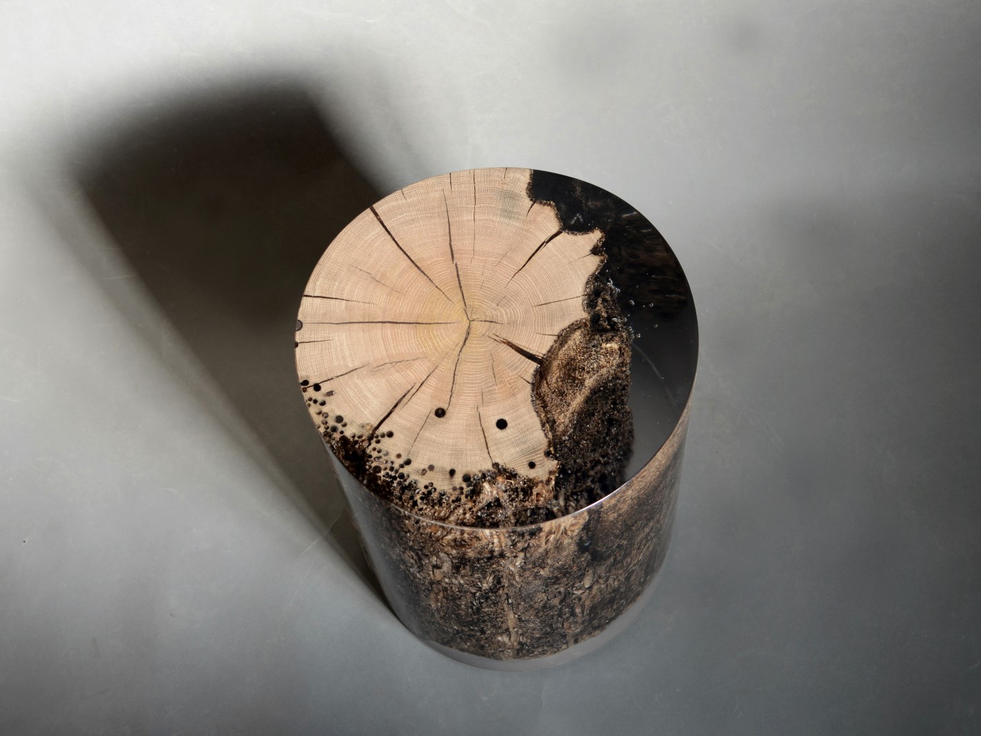 Surfacing FishEye is made of bricola wood, obtained from the timber poles that form the foundations of Venice, driven into the lagoon’s caranto layer – a mixture of solid clay and sand situated at great depths. In spite of everything, Venice continues its fight against the muddy ground and ever increasing water levels. Surfacing FishEye, which is sculpted by water, salt, shipworms and time, is a tribute to this epic submarine struggle that has transcended millennia. During their stay in the Laguna, these Oak logs are deeply sculpted by Teredo Navalis, shipworms that leaves traces of their passing on the wooden surface producing striking patterns of circular holes, whilst avoiding the inner core of the log, allowing it to maintain its health and strength. This creates a beautiful contrast between outer decay and inner robustness. The assiduous labour of the elements necessitates the replacement and scrapping of the poles, providing an organic material that has traversed by life.