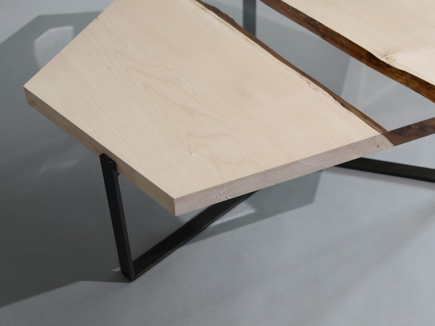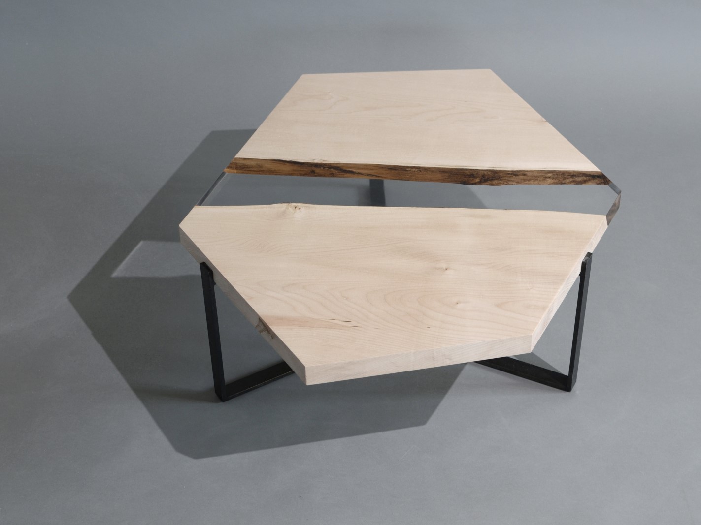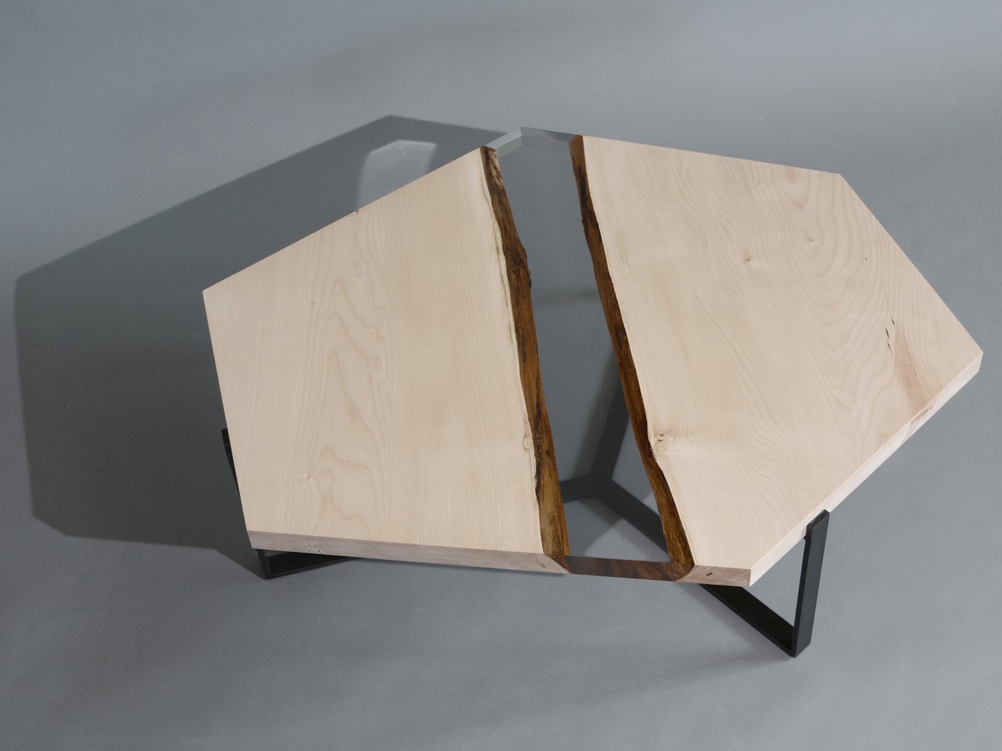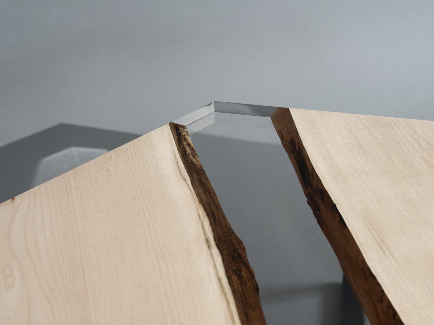 A special crystalline resin fill the gaps between the wood live edges completing the prisms and preserving their story.