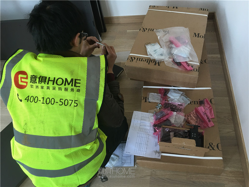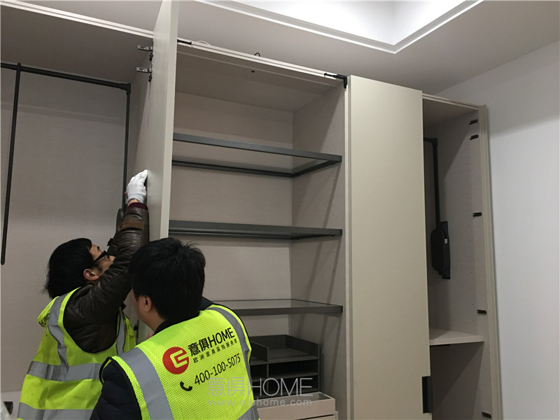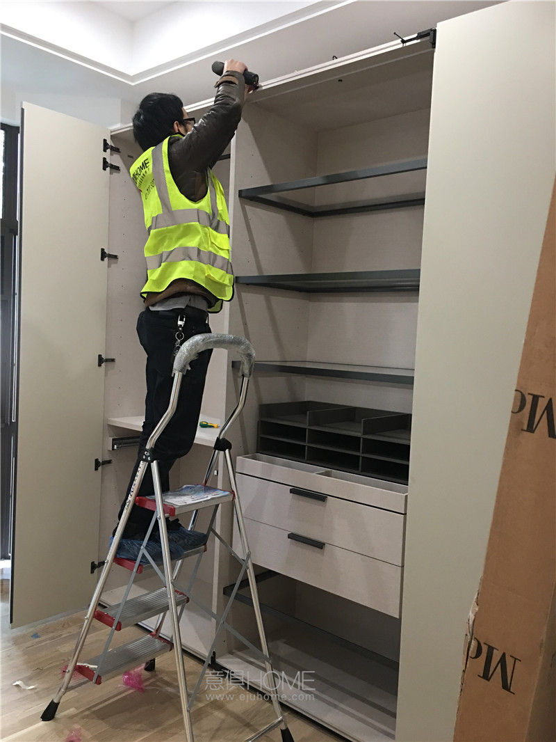 意俱員工正在安裝Molteni&C Gliss Master衣柜。