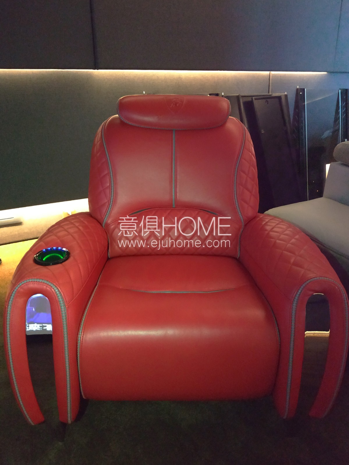 搭配的家庭影院座椅也是來自蘭博基尼的明星產品IMOLA電影椅。