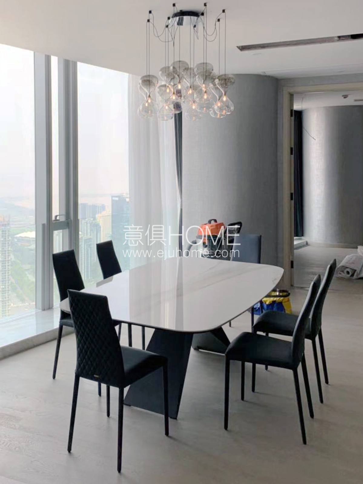 餐廳的視野極好,Cattelan餐桌椅搭配整面的落地窗增加了用餐時的愉悅度。