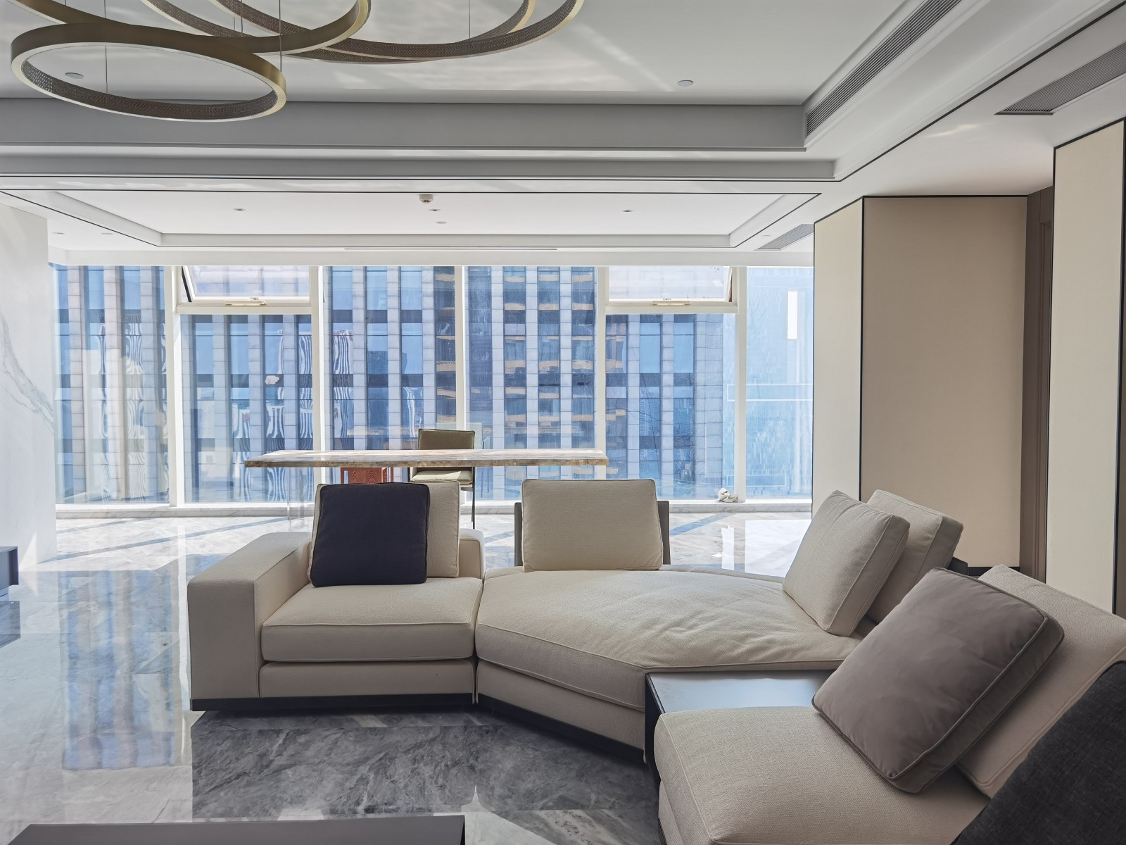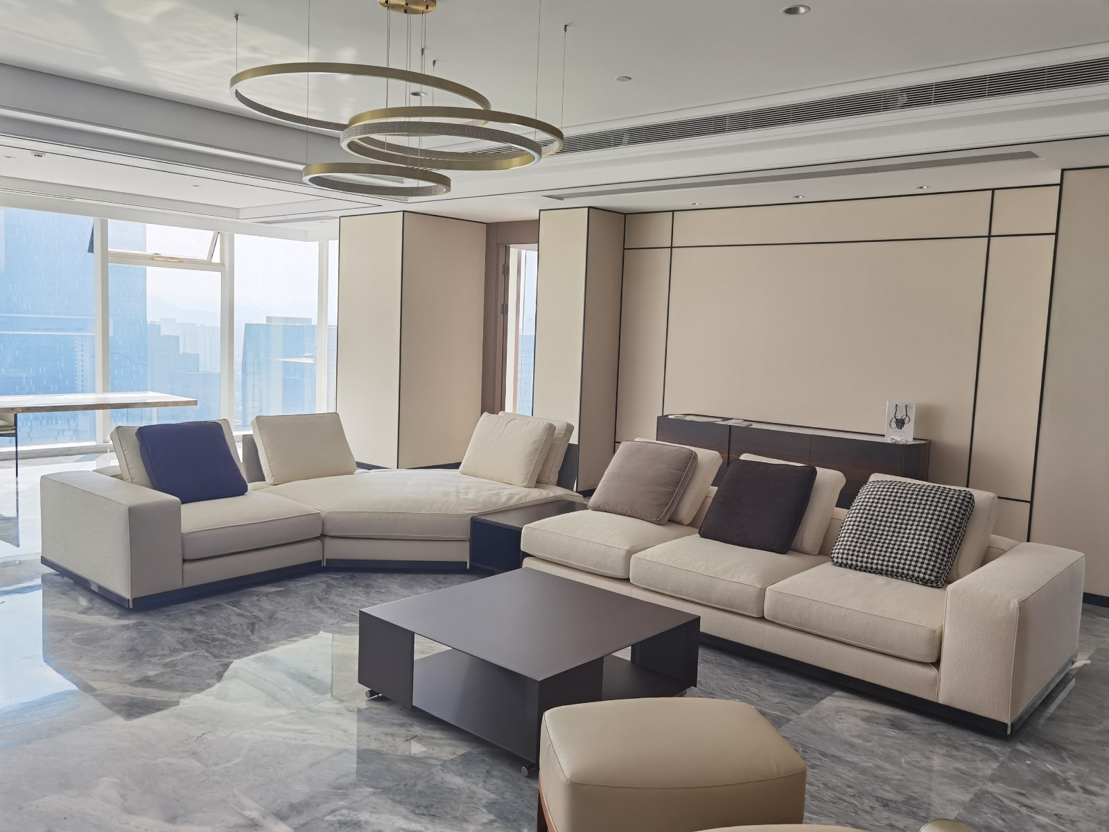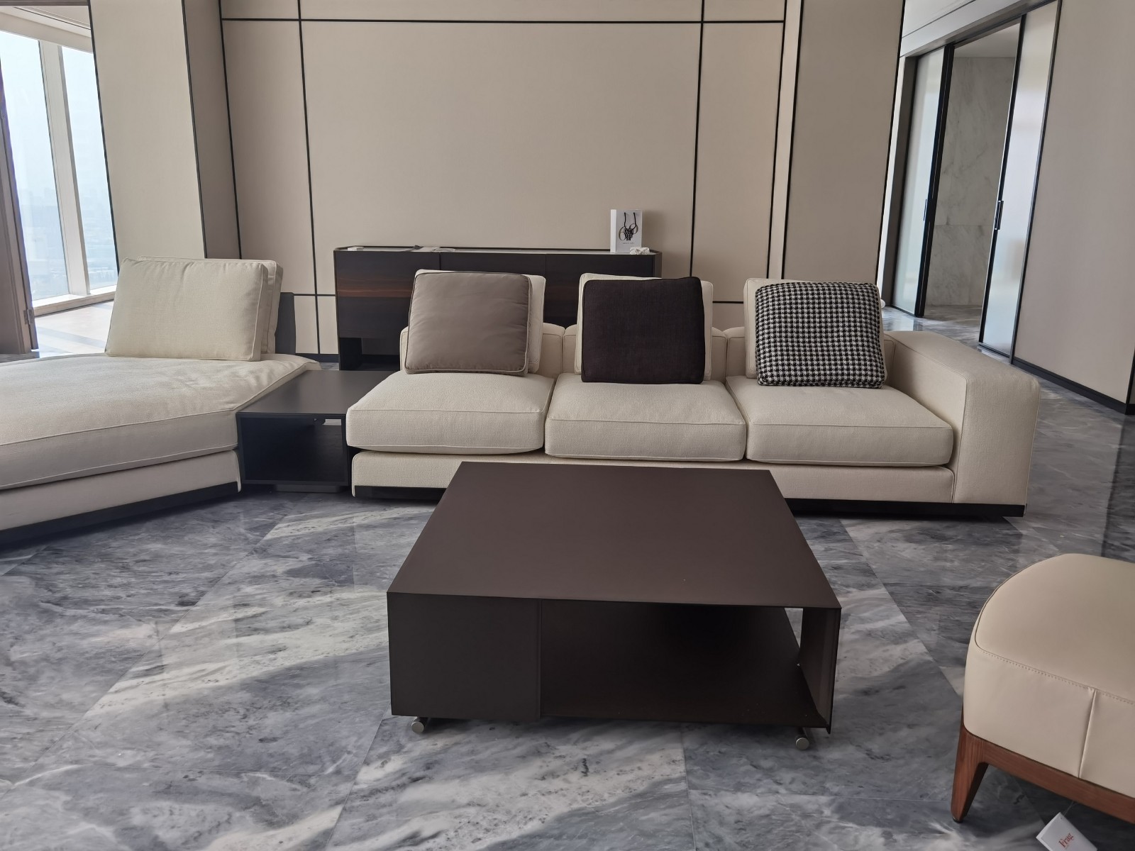 客廳的C位是Minotti經(jīng)典款沙發(fā)West,由意大利設計巨匠Rodolfo Dordoni親自操刀設計。