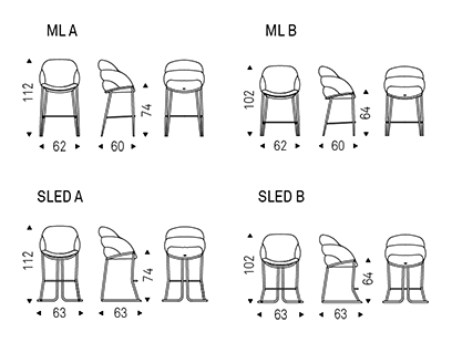 This designer armchair comes in two variants: Camilla, with legs in fine wood, and Camilla ML, with metal legs, making it lighter and more manoeuvrable. Both variants strike the perfect balance between a spacious seat and graceful legs.