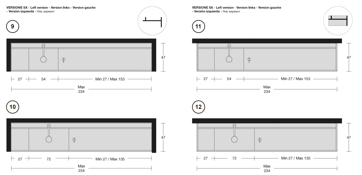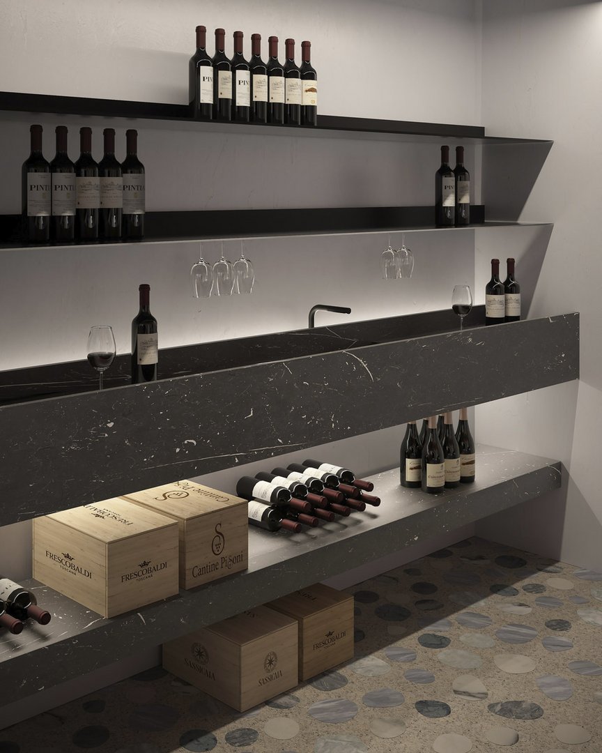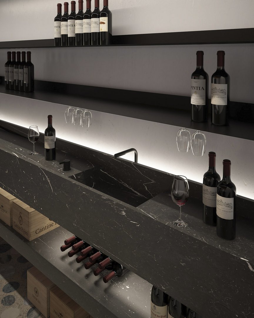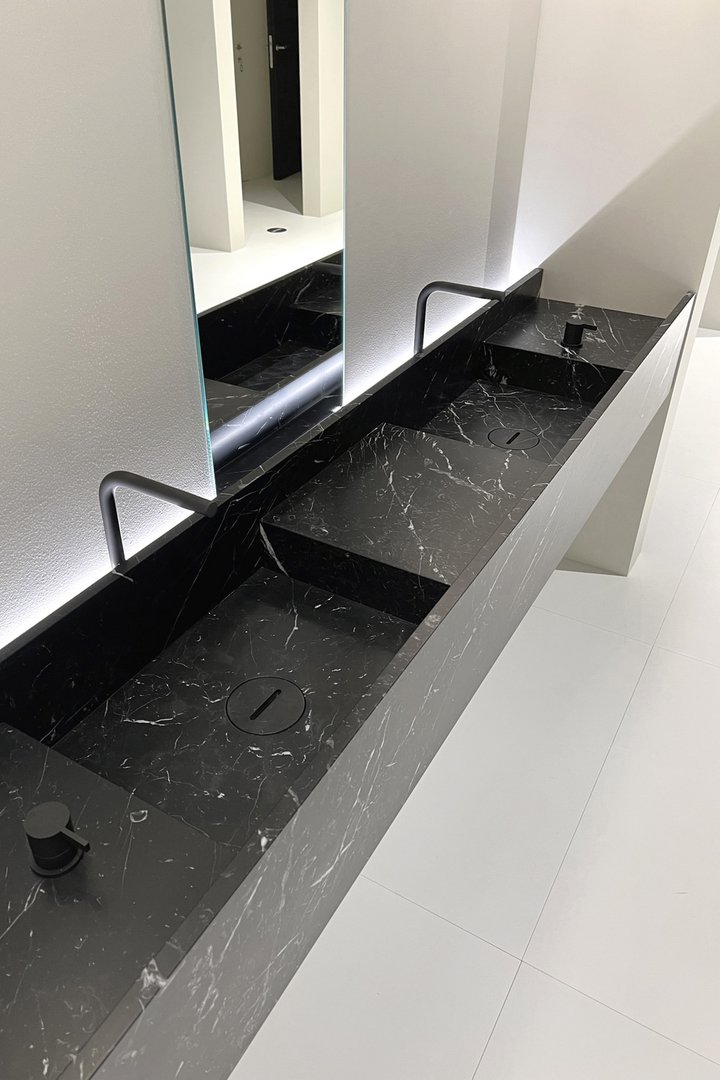 erfetto nella sua geometria rigorosa, contemporaneo nell’ortogonalità e nell’essenzialità delle linee impreziosite dalle infinite sfumature e variazioni cromatiche del marmo. Un lavabo che esprime al meglio la sartorialità di tutti i progetti antoniolupi, capaci di interpretare l’identità di ogni ambiente, di assecondare le esigenze dimensionali, di esprimere un’estetica sofisticata ed elegante. Due rette parallele disegnano lo spazio, definiscono lo spazio dell’acqua, due linee interrotte unicamente dai cambi di quota del top che danno vita alla sequenza ordinata e modulare di vasche e piani d’appoggio. Integrabile in nicchia o accostabile alla parete, nella versione con mobile o sospeso, identifica con pulizia formale ed eccellenza materica l’area lavabo.