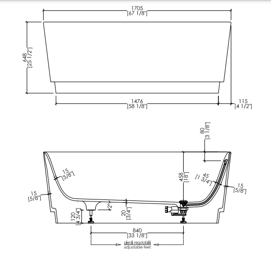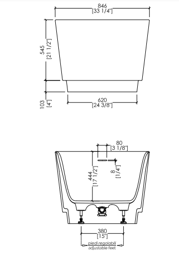 Drain with cover in White Tec Plus and siphoned trap assembly included. The plinth does not have a protective finish.