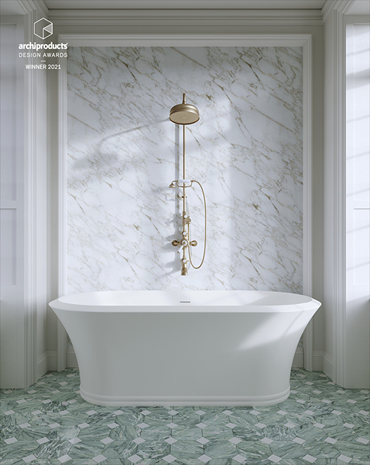 The result of a collaboration with architect Massimo Iosa Ghini, the Kalos bathtub gives a modern twist to sophisticated retro influences. Its sinuous design takes its cue from the organic forms of flower heads, while the stylish sculptural accents of the base's elegant moulding reflect the fluidity of rings on the surface of water. The bathtub body is in White Tec, an innovative composite that guarantees excellent impact or mark strength and compliance with the highest standards in terms of quality and sustainability.