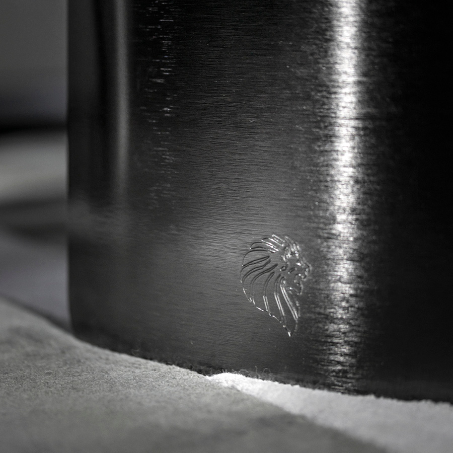 Bench available in first grade leather, nubuk leather, lizard printed leather, velvet or suede fabric. Curved legs in satin black nickel stainless steel with lasered Giorgio Collection logo.