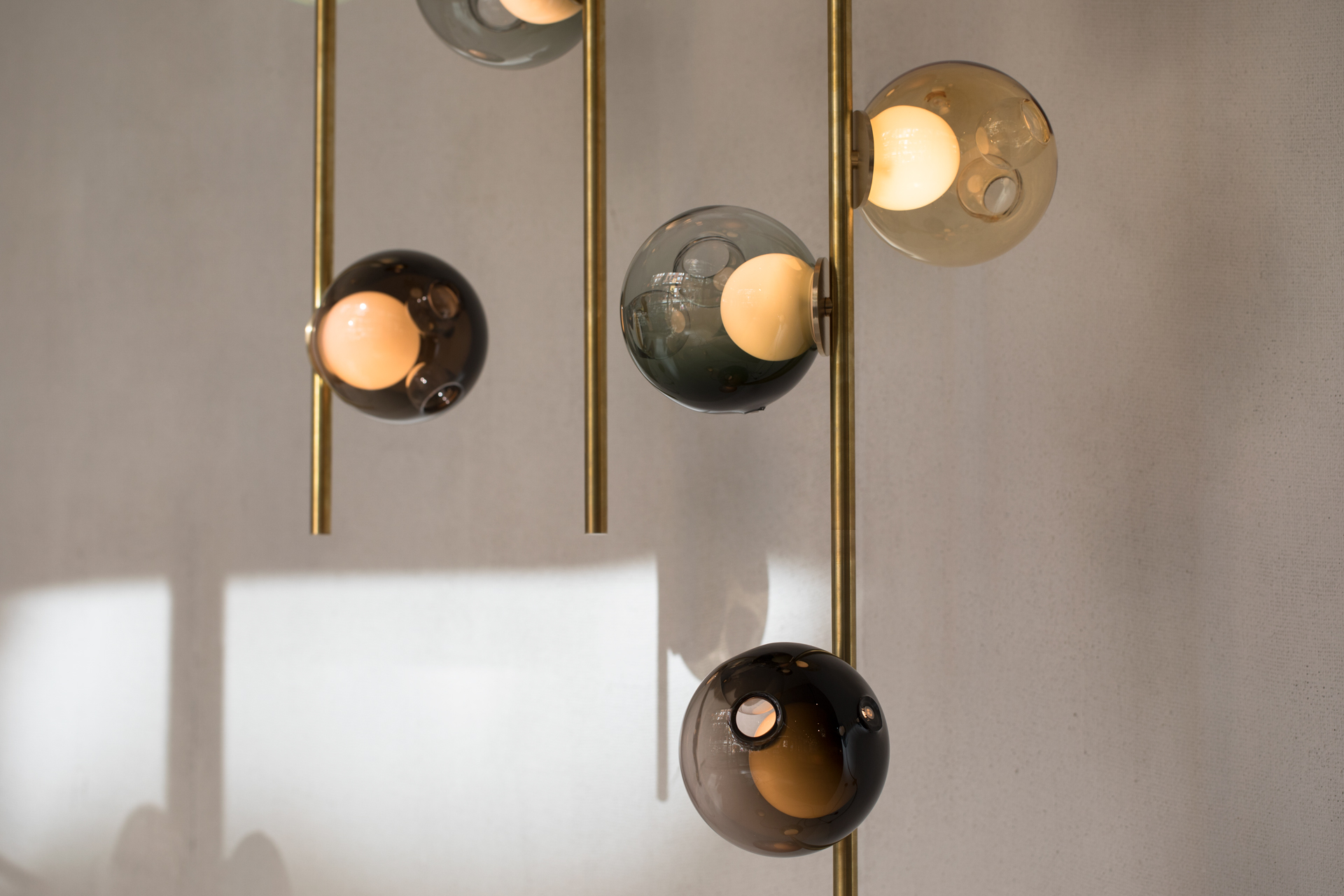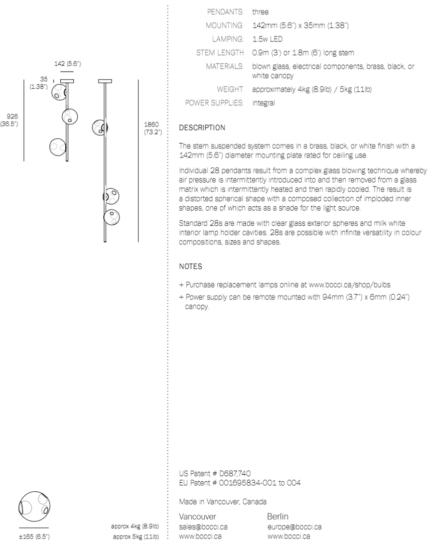 The 28 series stem suspended system comes in a brass or black finish and a variety of suspension options ranging from vertical ceiling-mounted stems to suspended horizontal stems. This system offers many options in terms of length and number of pendants.