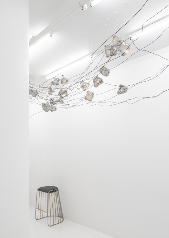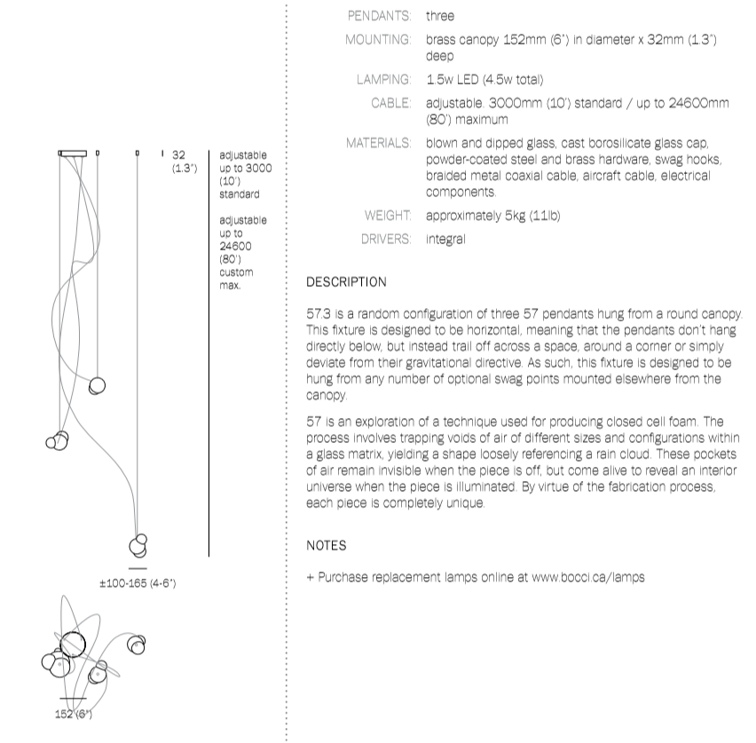 57 semi-rigid is a flexible suspension system enables pendants to be nestled in close-knit groups or loosely composed in a wider field, allowing each piece to be perceived individually.