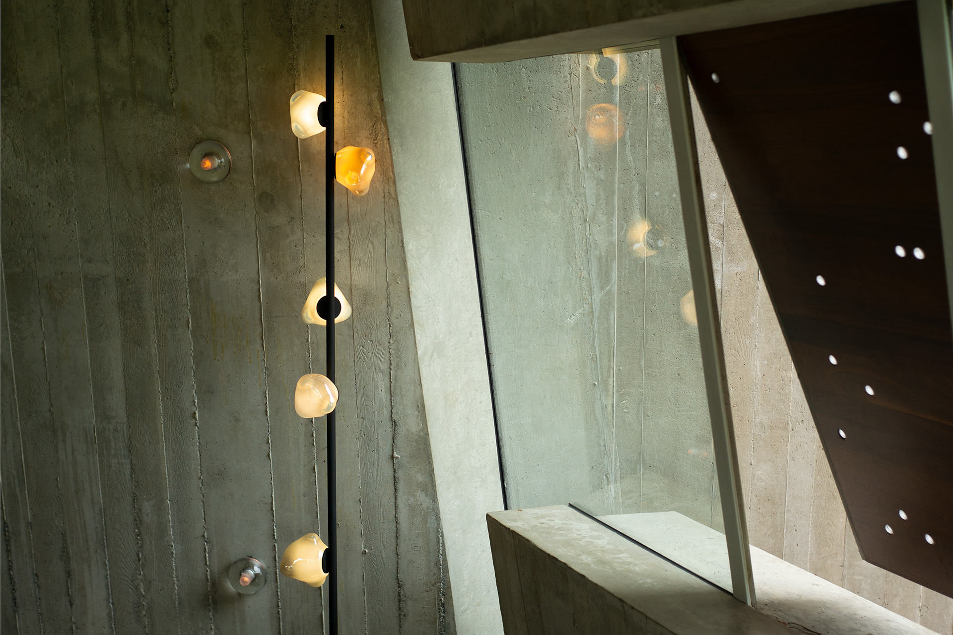 The 57 series stem floor system comes in a brass or black finish and three different configurations. The semi-rigid black fabric cord includes a patented integral 360 degree dimming system housed within a sleek brass cylinder.