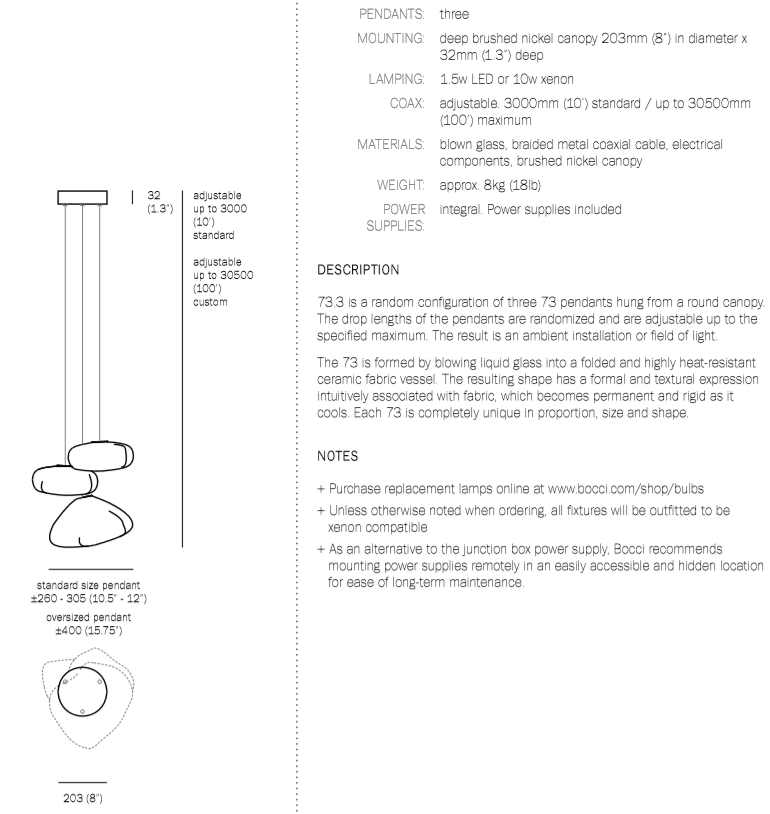 The 73 random is suspended using coaxial cable and composed in ambient groupings.