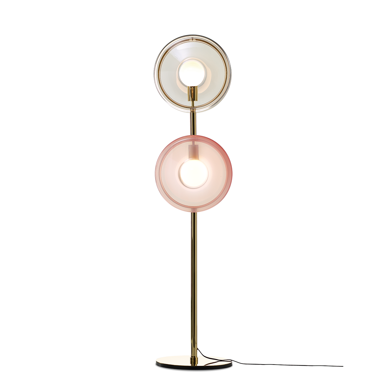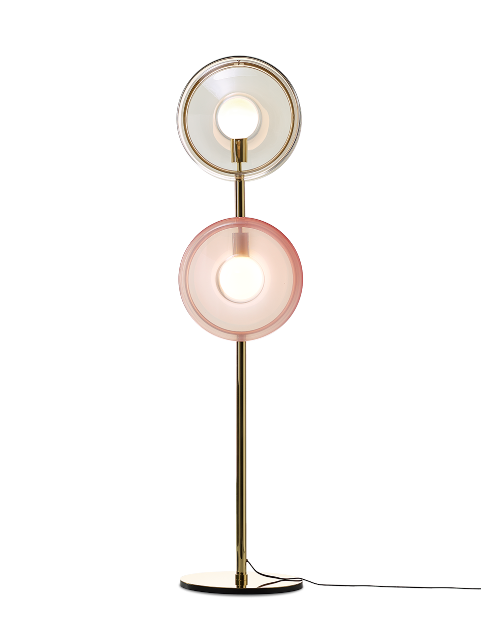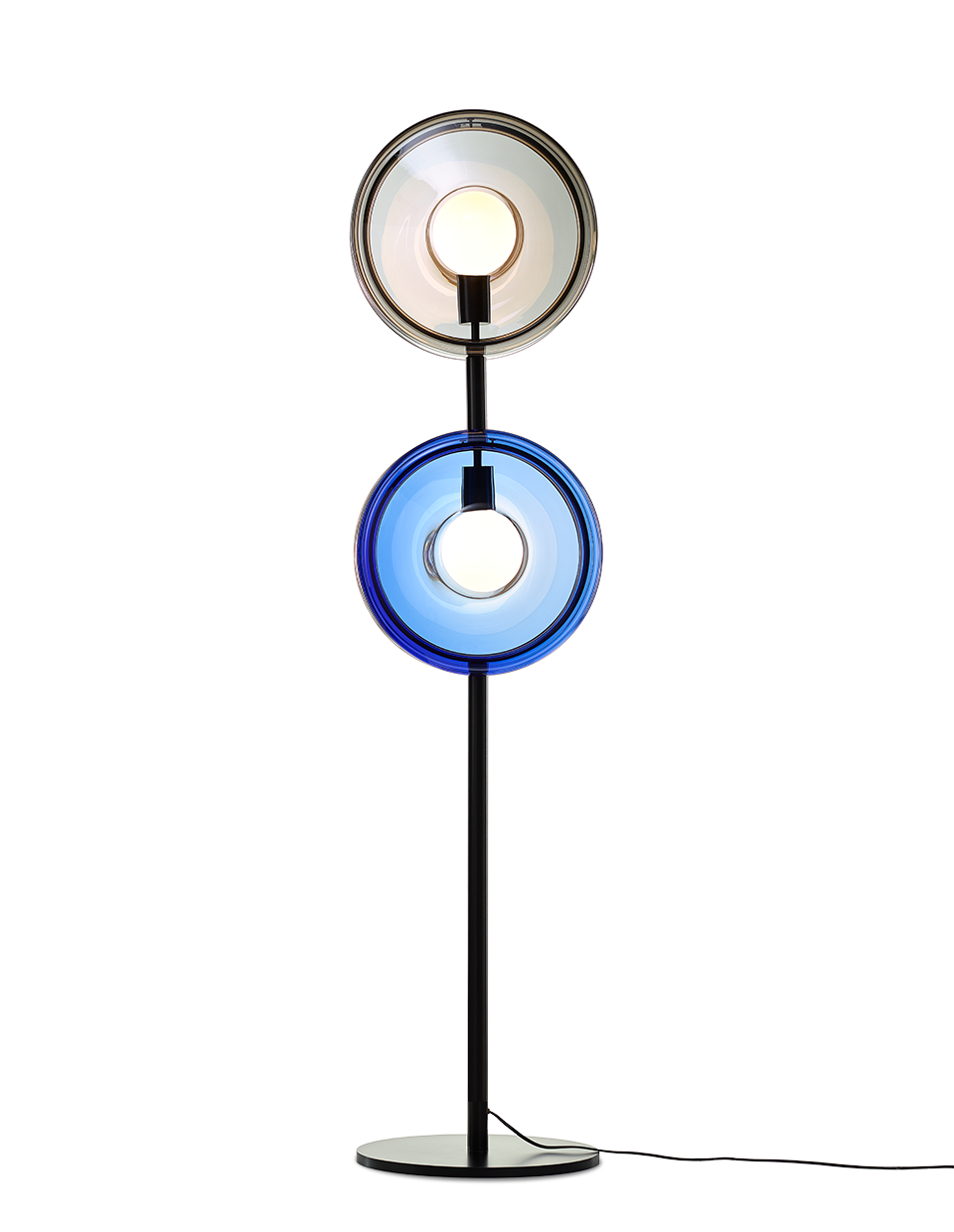 BOMMA’s Orbital traces paths of multicolored celestial bodies that glow with hypnotically red-hot cores. This ingenious design of mouth-blown glass lenses, held together by a metal mounting, creates a fascinating visual experience from many different angles. Our unique lighting objects in moonlight clear, pastel pink, sea blue, polar white and mysterious black, lend a truly magical atmosphere to any sophisticated interior.