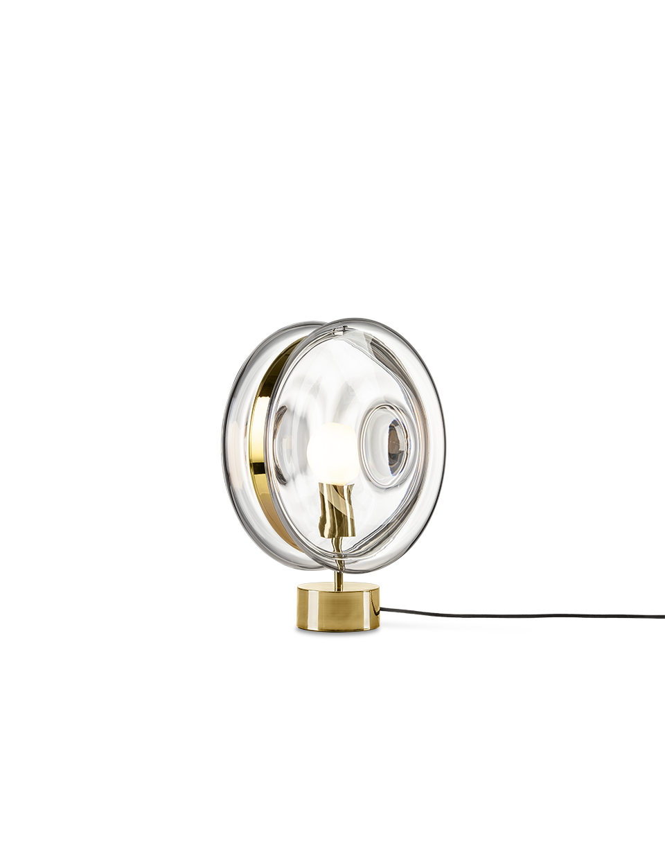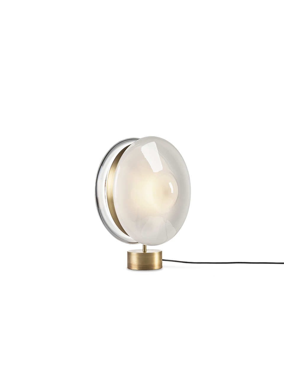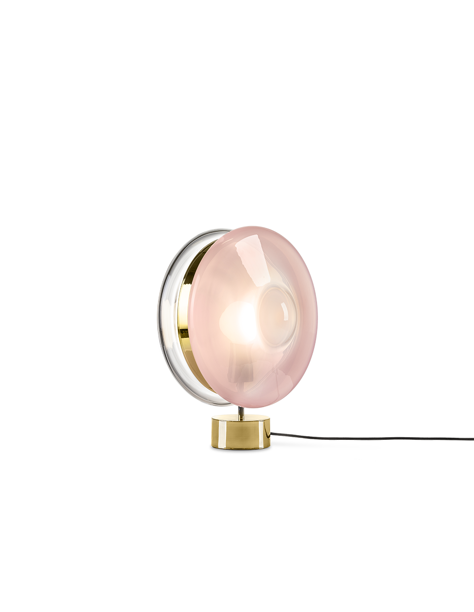 BOMMA’s Orbital traces paths of multicolored celestial bodies that glow with hypnotically red-hot cores. This ingenious design of mouth-blown glass lenses, held together by a metal mounting, creates a fascinating visual experience from many different angles. Our unique lighting objects in moonlight clear, pastel pink, sea blue, polar white and mysterious black, lend a truly magical atmosphere to any sophisticated interior.