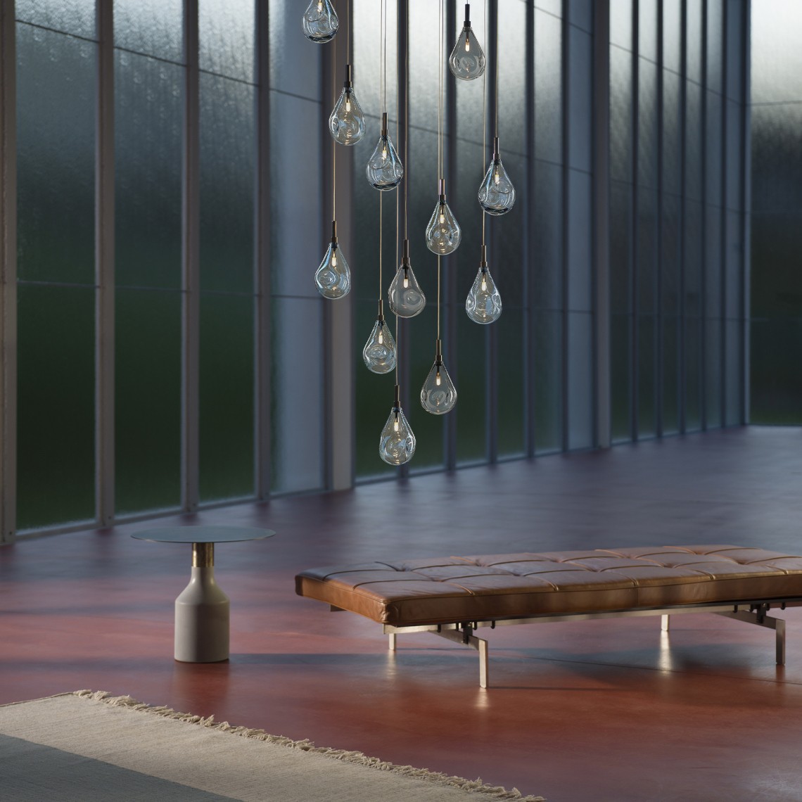 Varied colors, transparency and continuously changing shapes – the characteristic features of soap bubbles-- inspired this BOMMA collection. When lighted, the metallic sheen of its surface transforms to iridescent and translucent, exposing its crystal character. The entire collection is produced using the technique of hand-blowing without a form. The seemingly perfect droplet of molten glass is given a unique shape as well as a unique color spectrum. The Soap Mini collection allows unlimited space for your creativity, with the option to create as large groups of crystal drops as you fancy – from smaller compositions to expansive light constellations.